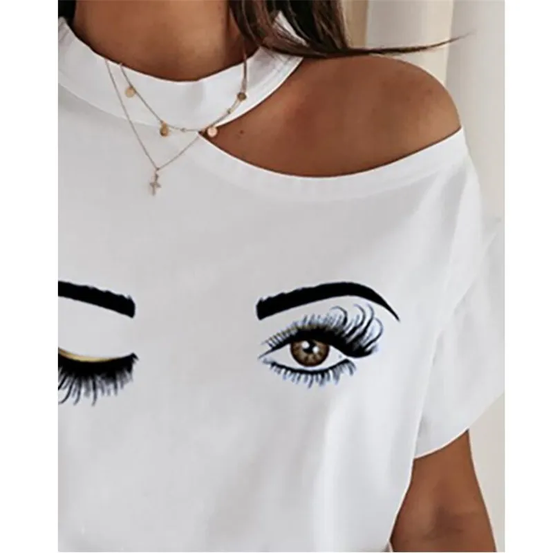 Женская футболка с коротким рукавом, принтом губ и ресниц, женская футболка Harajuku