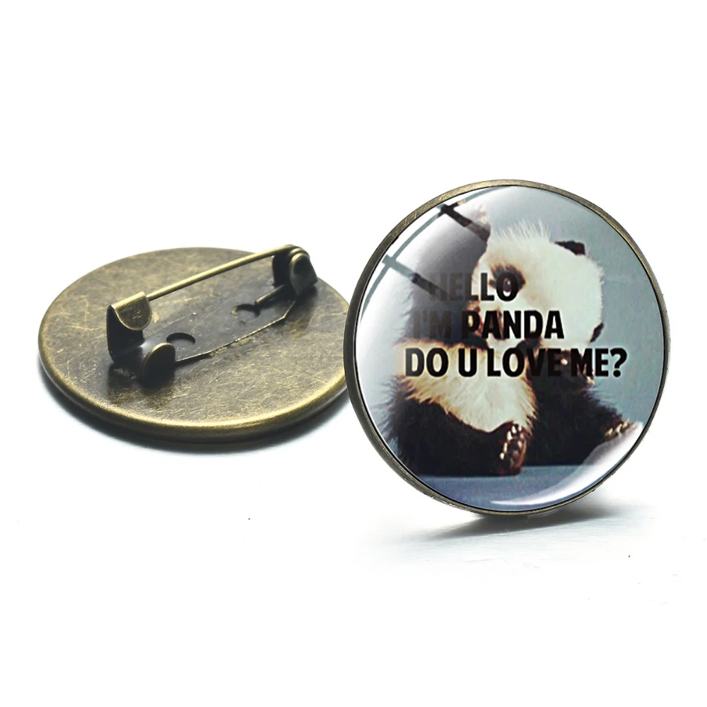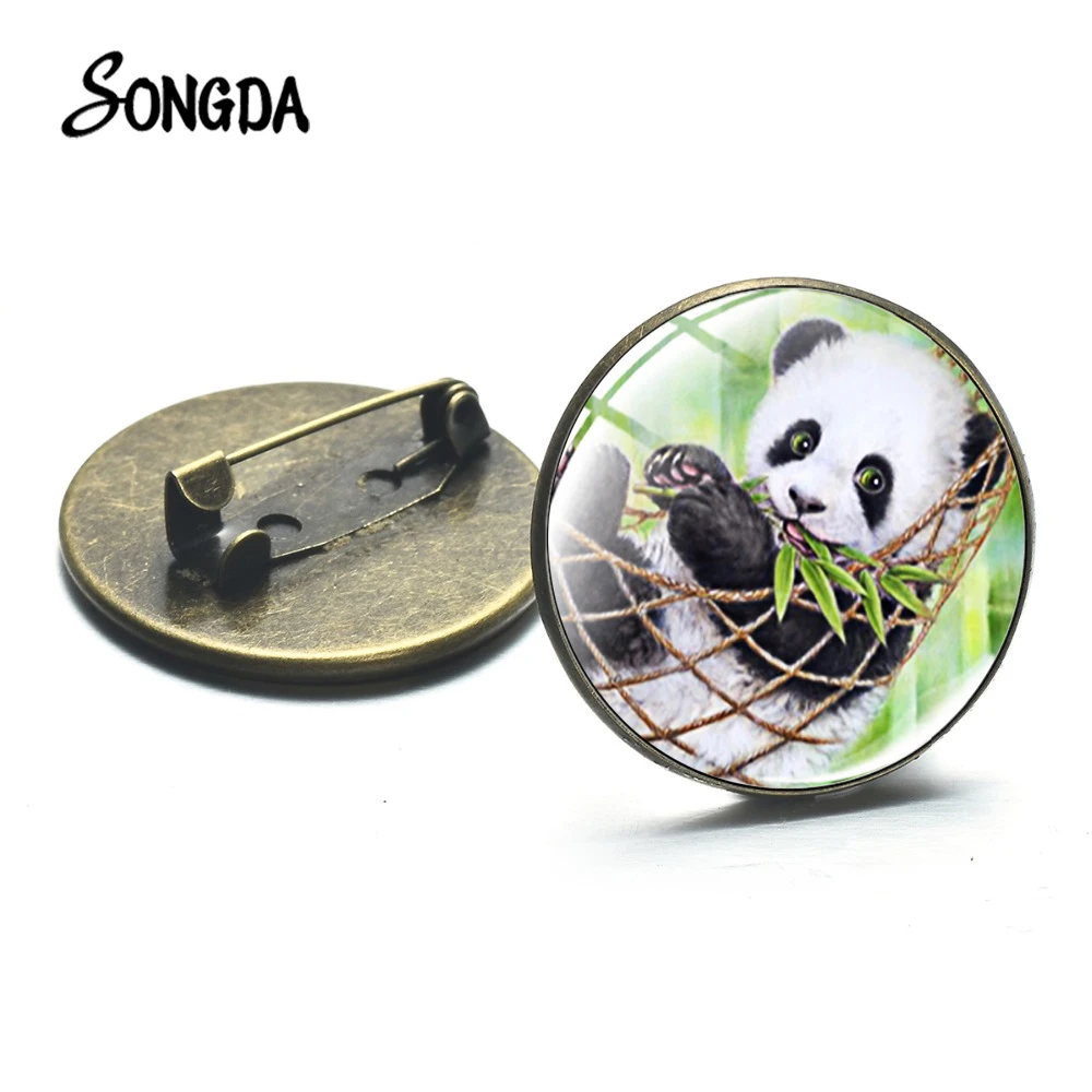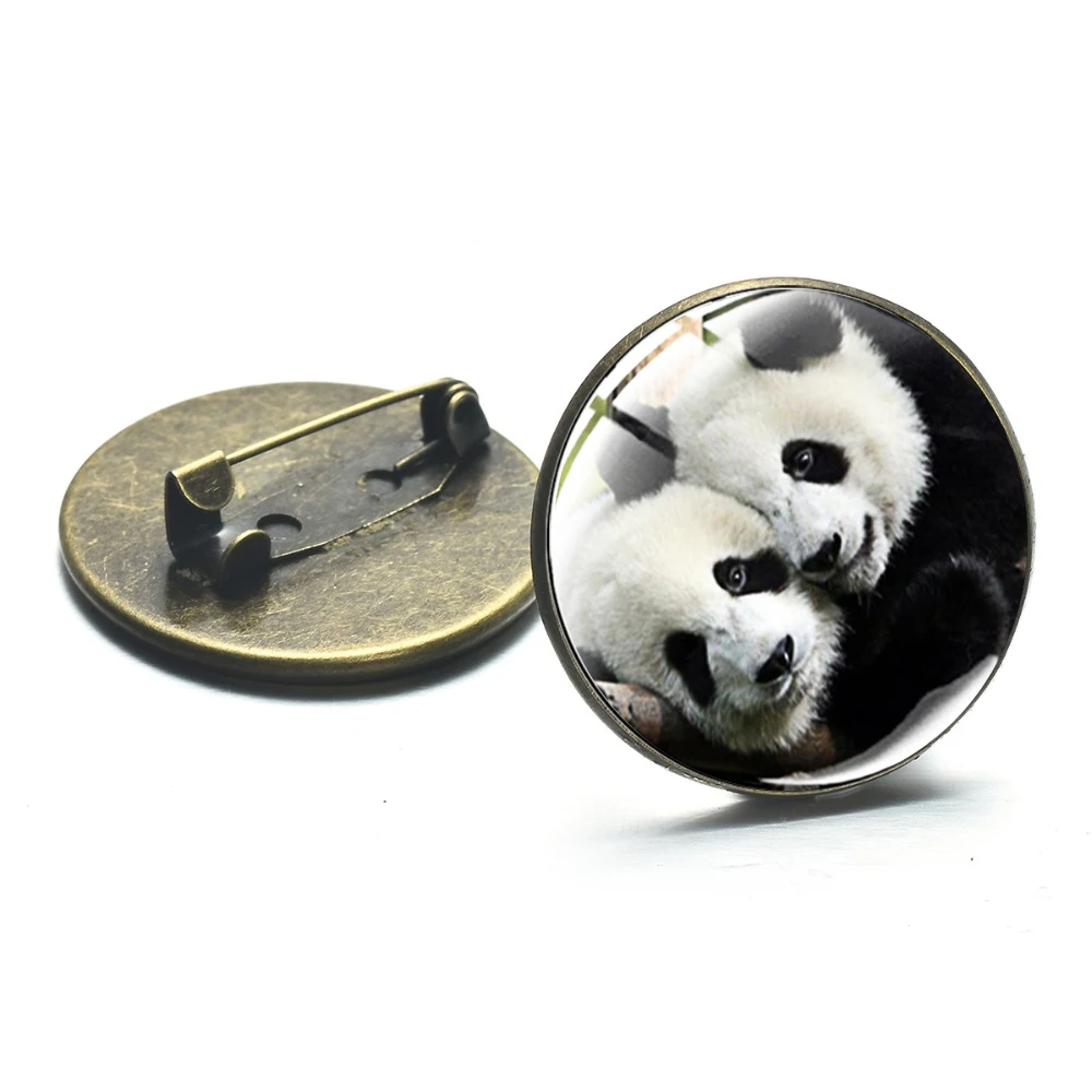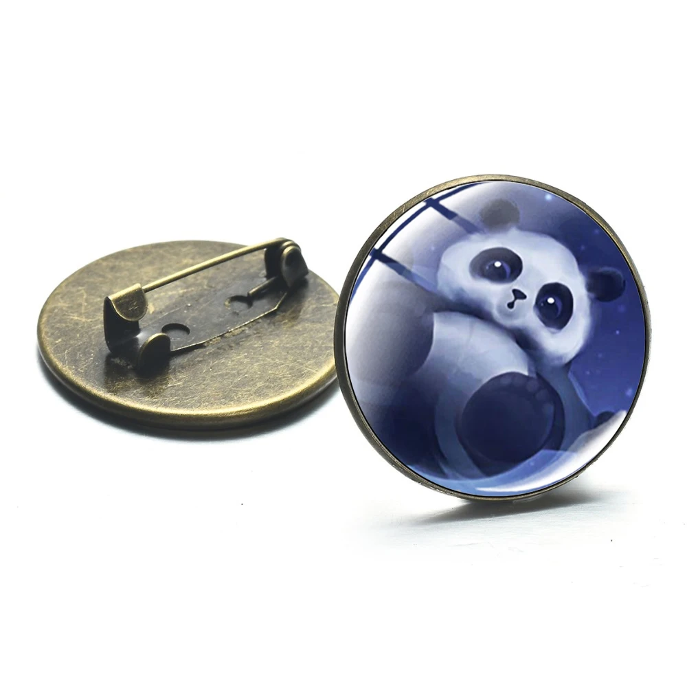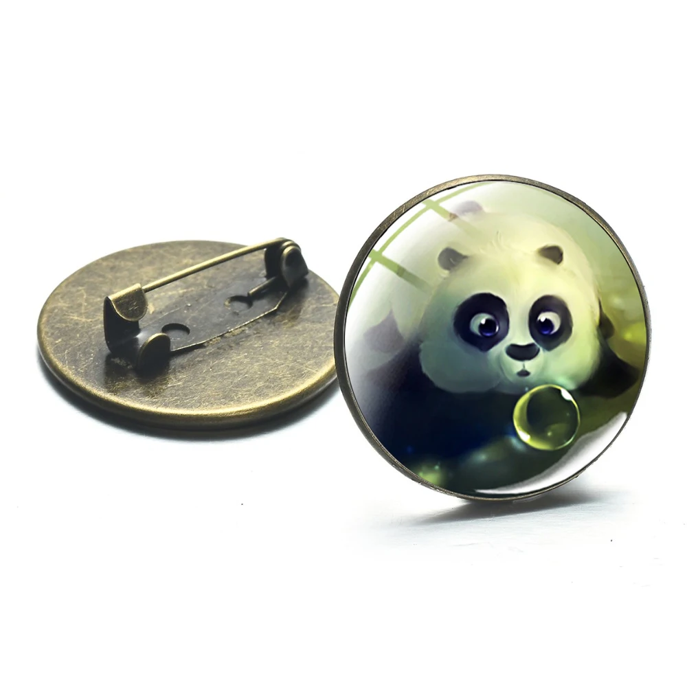 Дружественных животных панда, бамбук Мультяшные Броши кабошоны разрисованные изделия из стекла значки материал для изготовления сумок, одежды, рубашка с лацканами, булавки, подарок для детей
