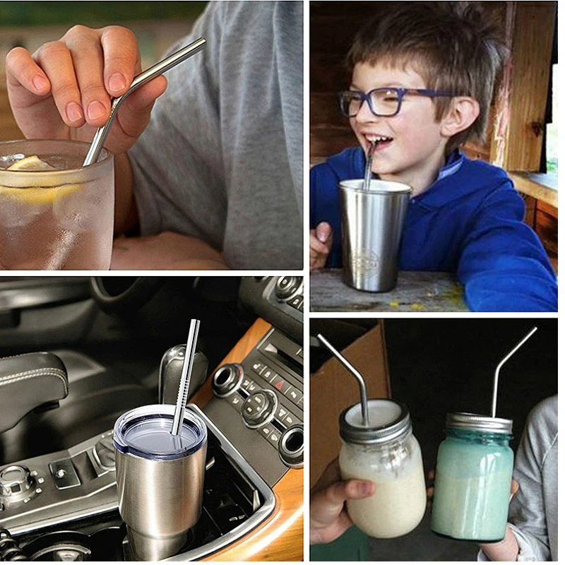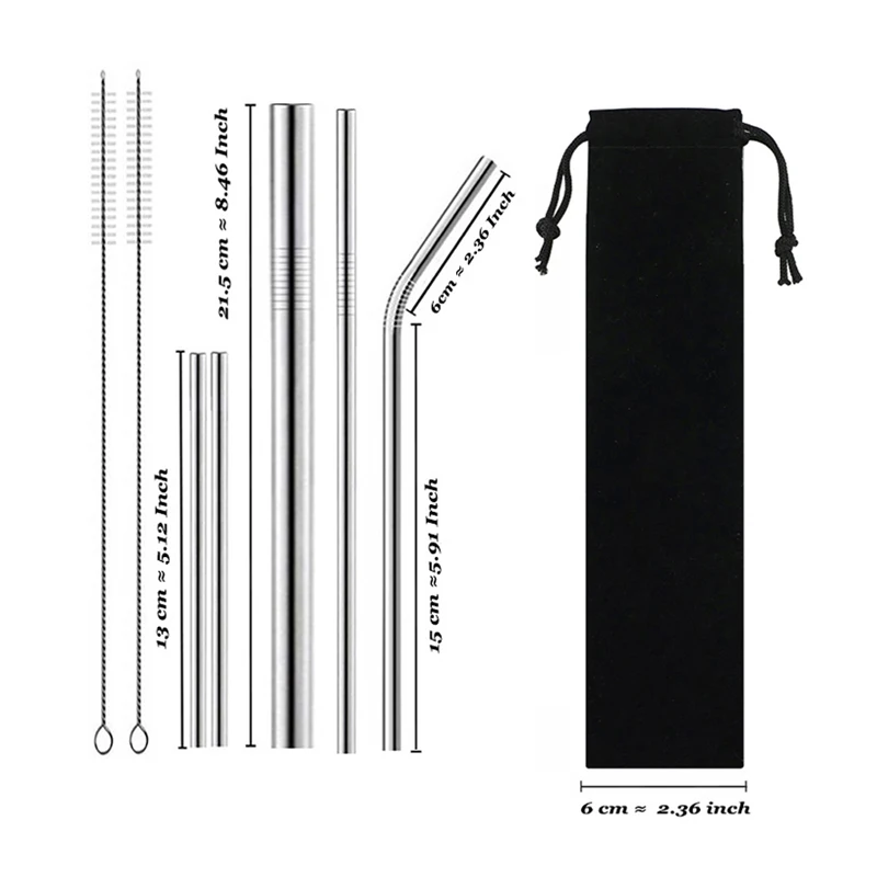 Многоразовые металлические трубочки для питья набор из 9 шт. 304 прочная изогнутая прямая Портативная сумка