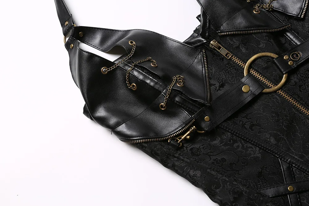 4-Сталь хип-хоп панк кожа корсет с поясом и круглым вырезом Shapepi...