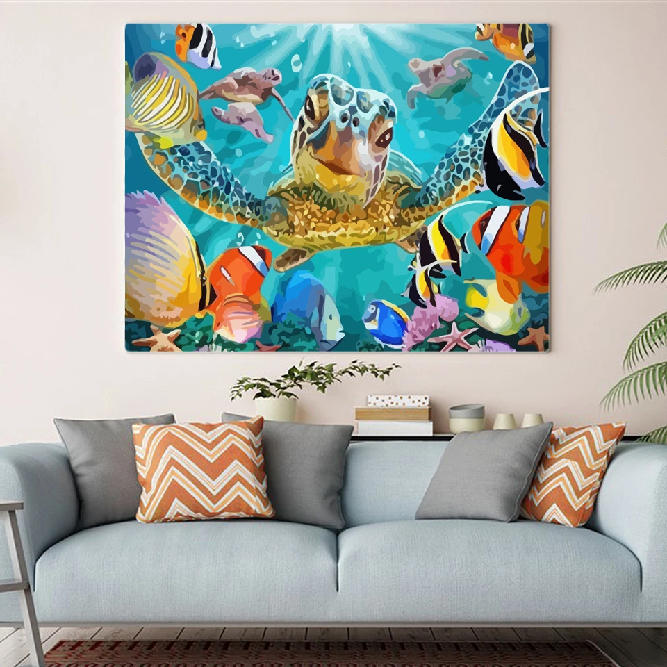 Роспись по номерам EverShine, животные, ручная роспись, сделай сам, раскраски по номерам, черепаха, набор для рисования на холсте, Настенный декор для детской комнаты