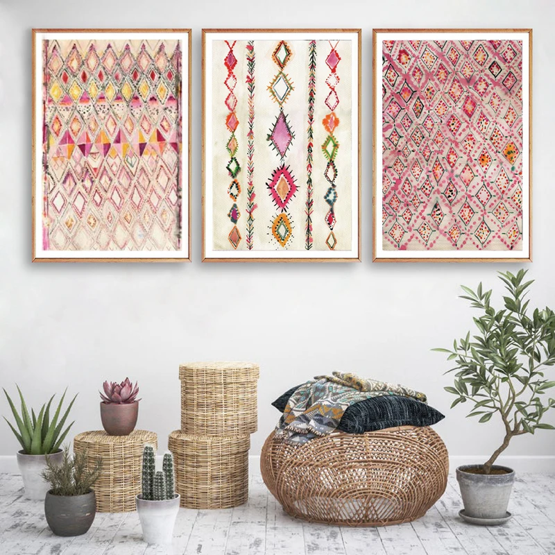 Марокканский ковер, розовые постеры и принты, эклектический домашний декор, богемное искусство, фотография, Украшение стен