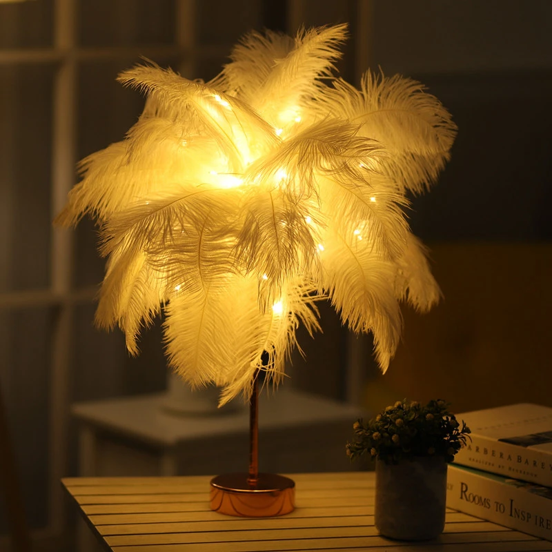 Светодиодный перьевой Настольный светильник с дистанционным управлением, USB мощный теплый светильник, абажур для дерева, для свадьбы, дома, спальни, ужина, вечерние, для домашнего декора