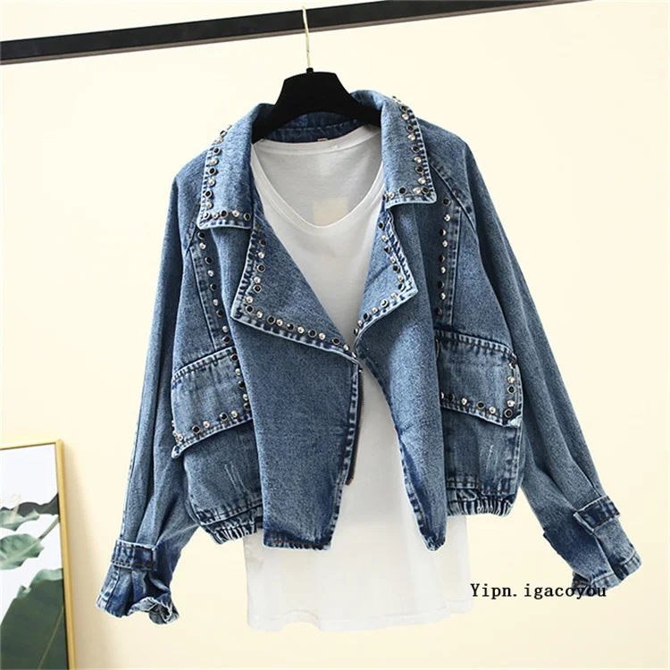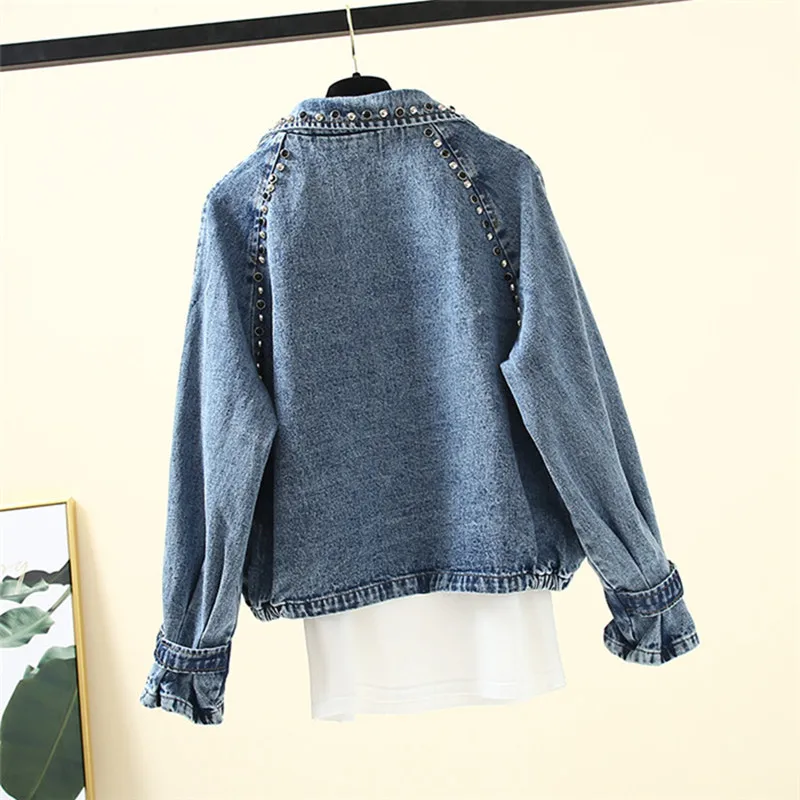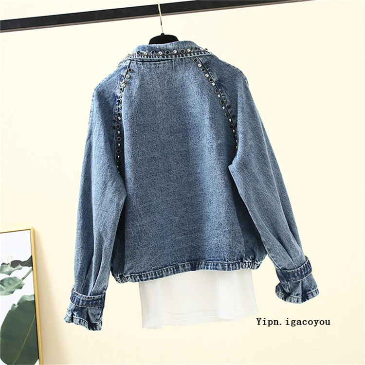 Женская джинсовая куртка с заклепками, повседневная мешковатая джин...