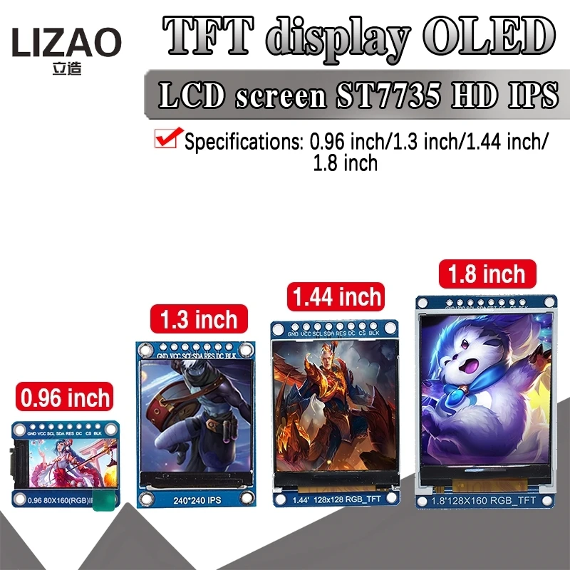 Полноцветный ЖК-модуль TFT 0,96, 1,3, 1,44, 1,8 дюйма, IPS 7P SPI HD 65K, ST7735ST7789, Привод IC 80*160, 240*240 (не OLED)