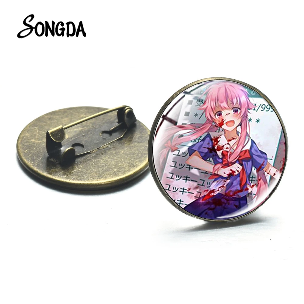 Японское аниме Mirai Nikki, дневник будущего, броши, коллекция Значки для косплея, мультяшный узор, стеклянная брошь из кабошона, булавка, украшения