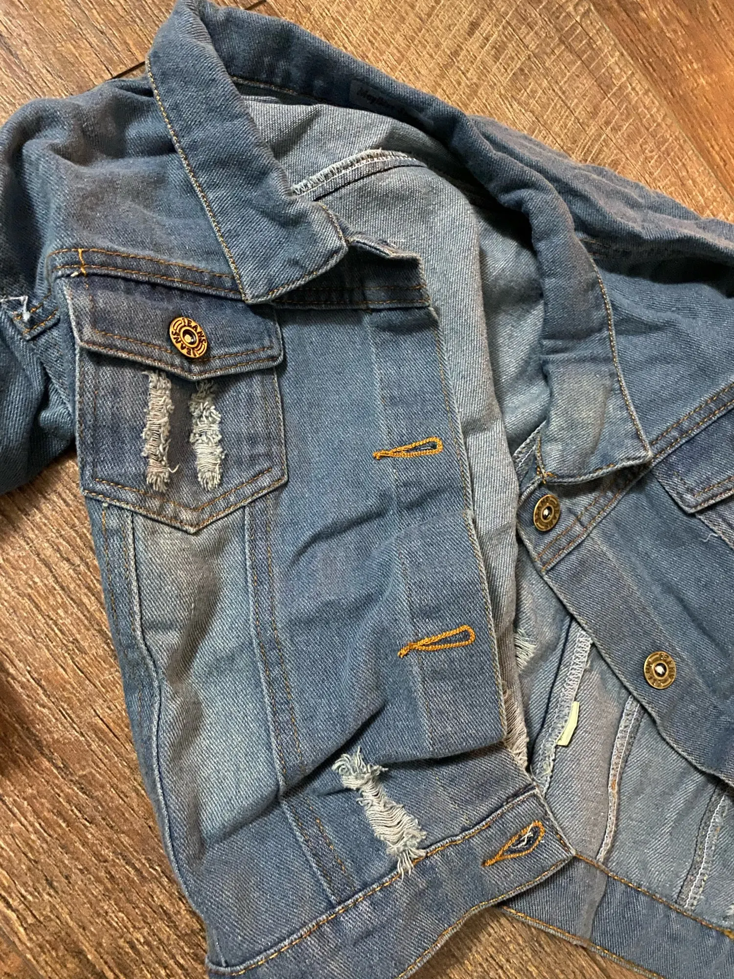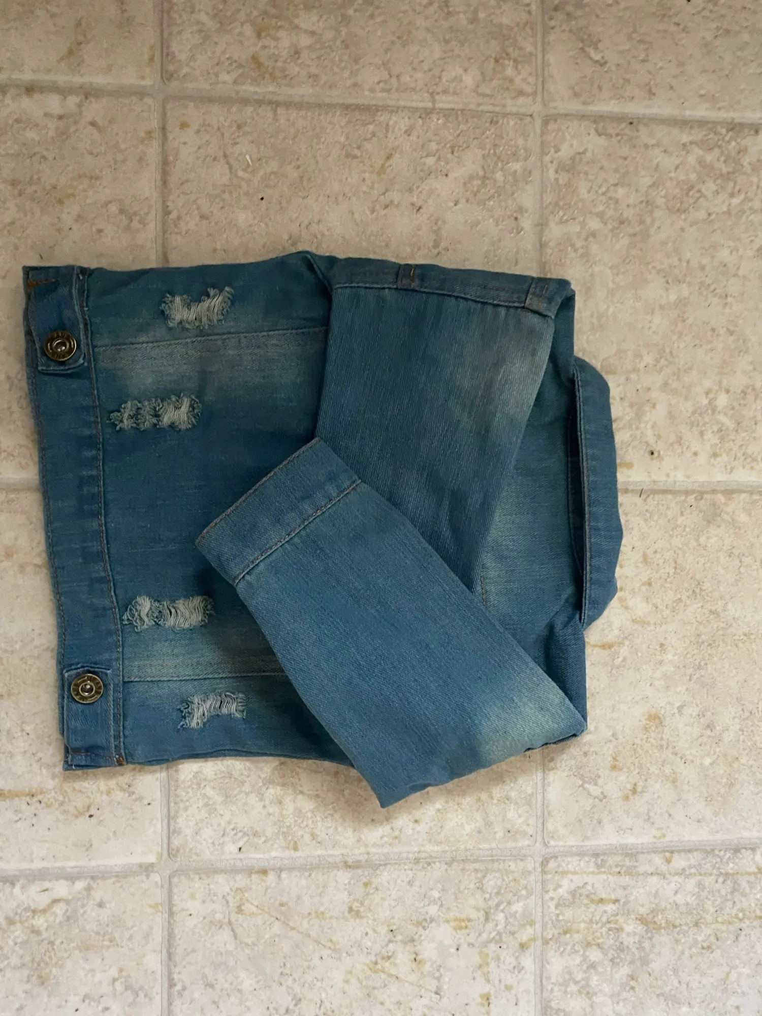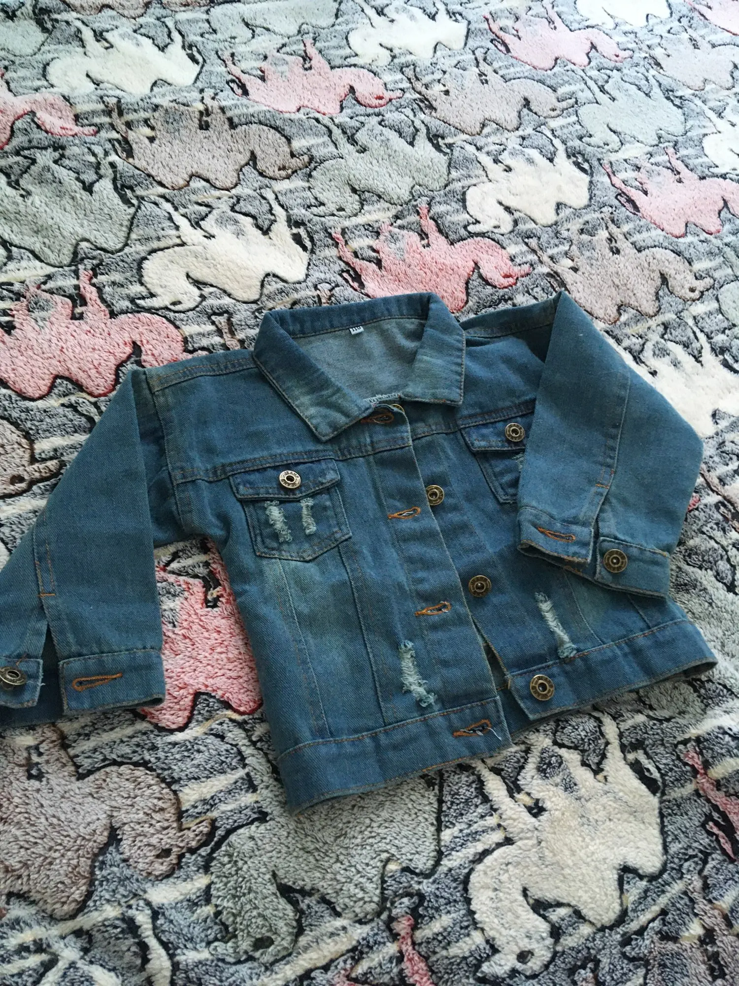 Детская джинсовая куртка с дырками, на возраст 12-6 лет