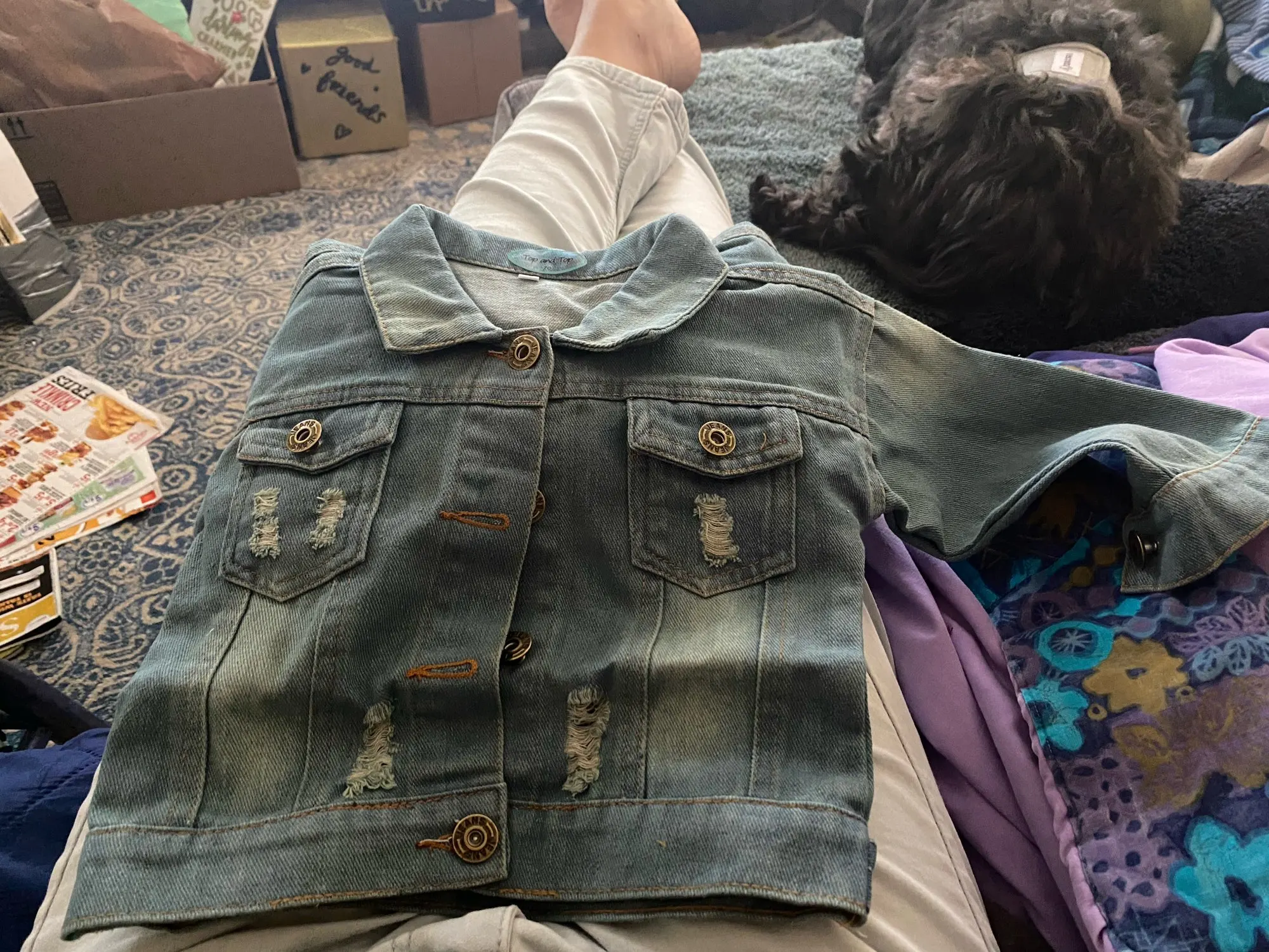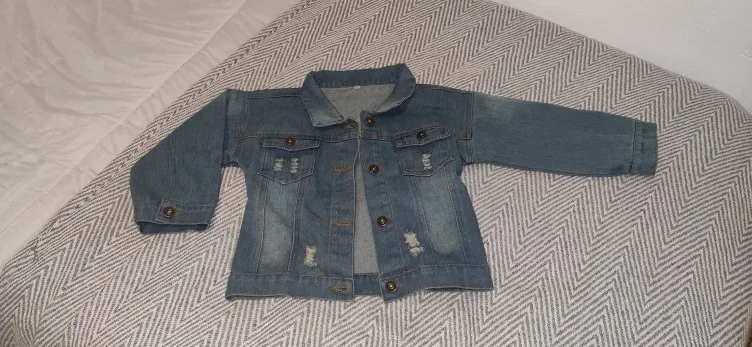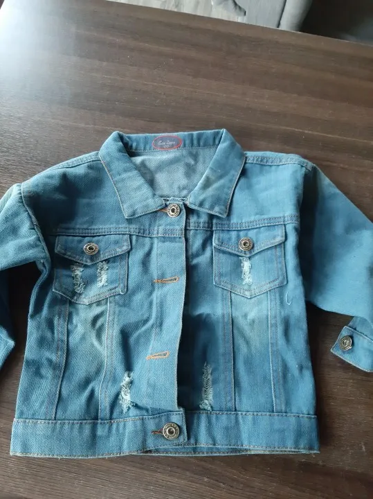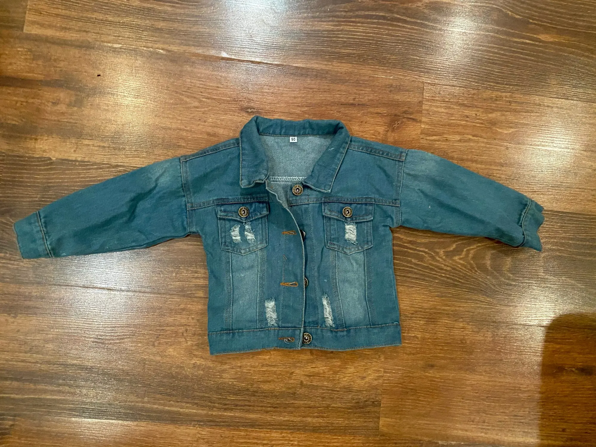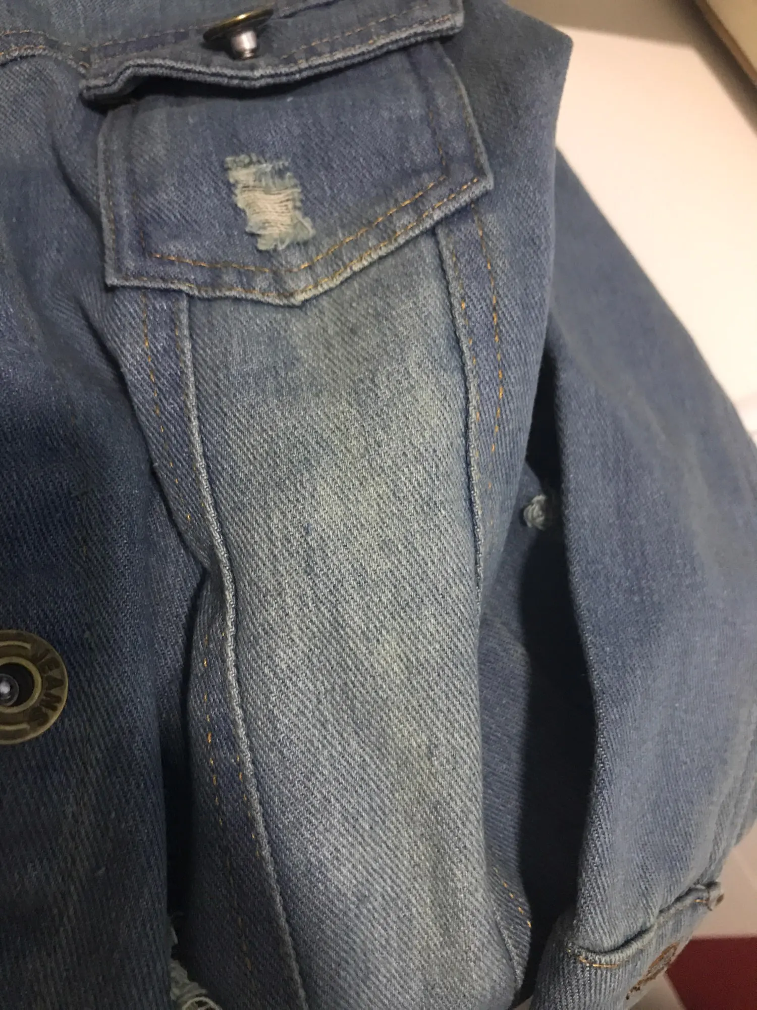 Детская джинсовая куртка с дырками, на возраст 12-6 лет