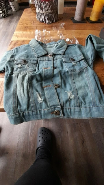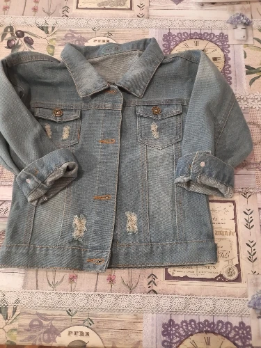 Чудесная куртка, можно носить не один год, прекрасно смотрится как оверсайз, рукав 3/4, больше подойдёт для лета и тёплой весны.