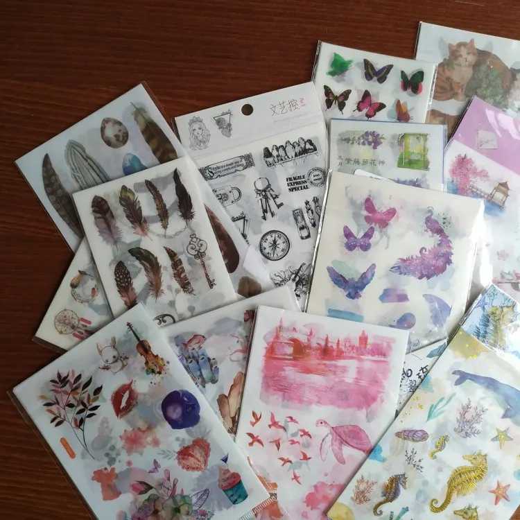 Чудесные наклейки у этого продавца. Радует ассортимент и дизайн. Если некоторые комплекты покажутся вам на первый взгляд бледноватыми, советую положить стикеры на белый фон : совсем другой визуальный эффект. В основном я заказывала в этом магазине нежные наклейки на тончайшей основе (эффект акварели, просвечивают). Мне очень нравится такой эффект (на белом фоне смотрится отлично).