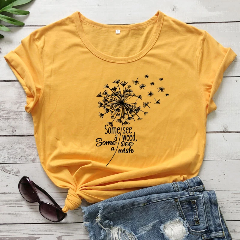 Некоторые видят траву, какое-то пожелание, футболка, эстетическая футболка с рисунком одуванчика и ботанических растений, модные женские топы с графическим вдохновляющим цитатами, футболки