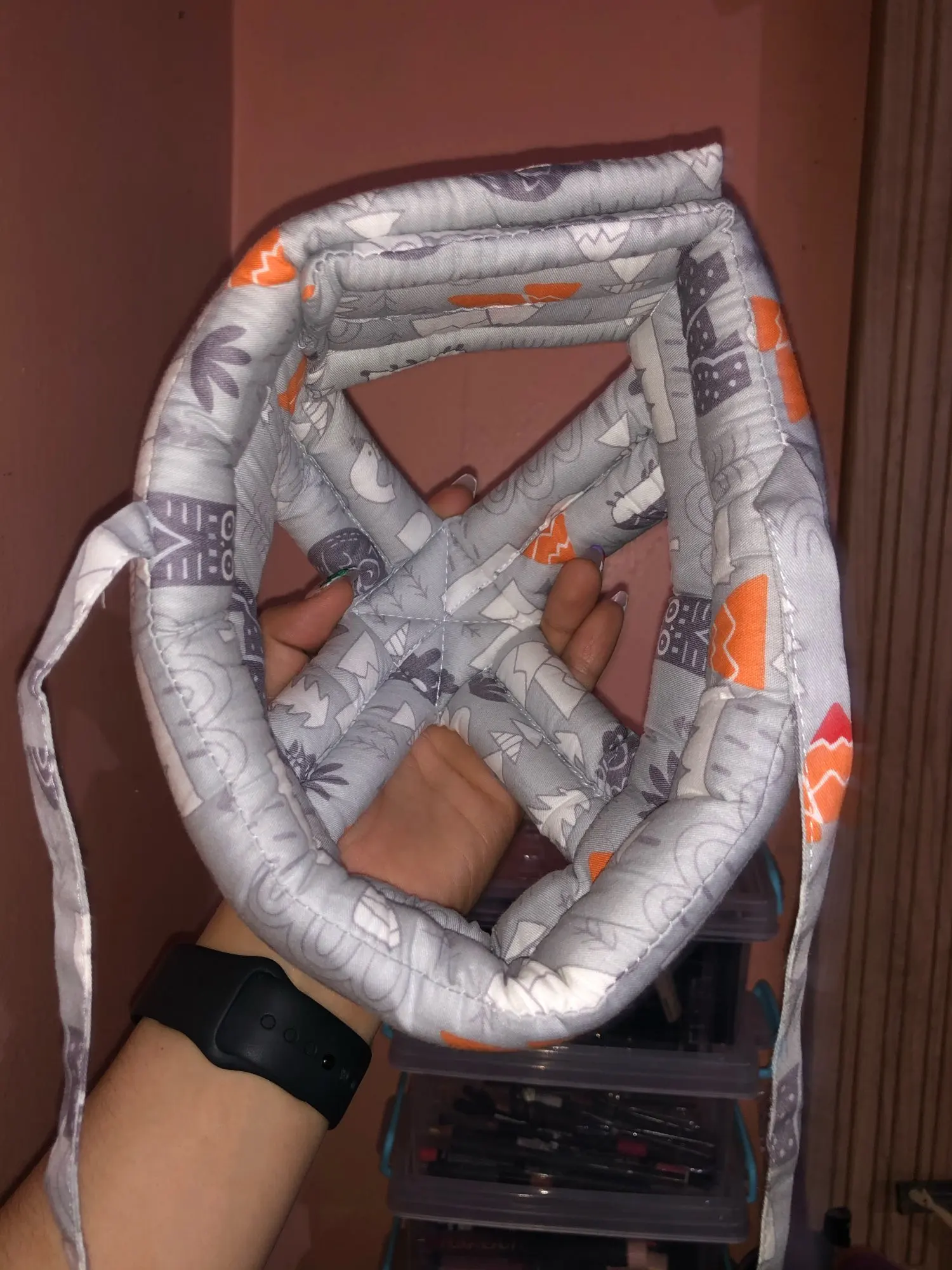 Продукт хорошего качества. Хорошо защищает вашу голову. Ранний ребенок не носит одежду, но через некоторое время обратите на это внимание. Хорошая регулируемая застежка-липучка, подходит для головы. Хороший запах.