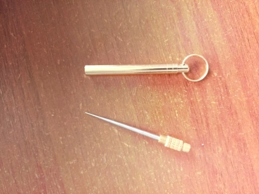 Идеальная иголка) По качеству не предраться, даже уплотнительное кольцо есть, чтобы влага не попадала. Иголка выкручивается, и вкручивается другим концом в корпус, создавая ручку. Длина общей собранной конструкции примерно 11,5 см. Качество металла самой иглы не проверял, жалко портить. Закажу ещё парочку.