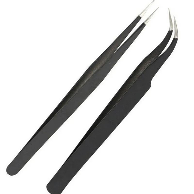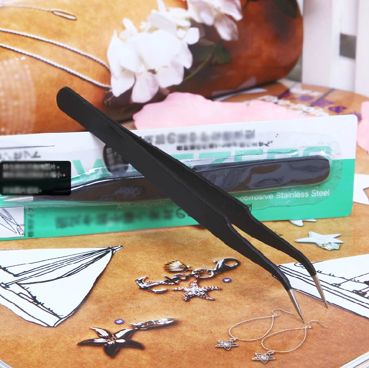 1 шт. Профессиональные черные прямые Изогнутые акриловые пинцеты Стразы для дизайна ногтей украшение из блесток зажимы для бровей из нержавеющей стали