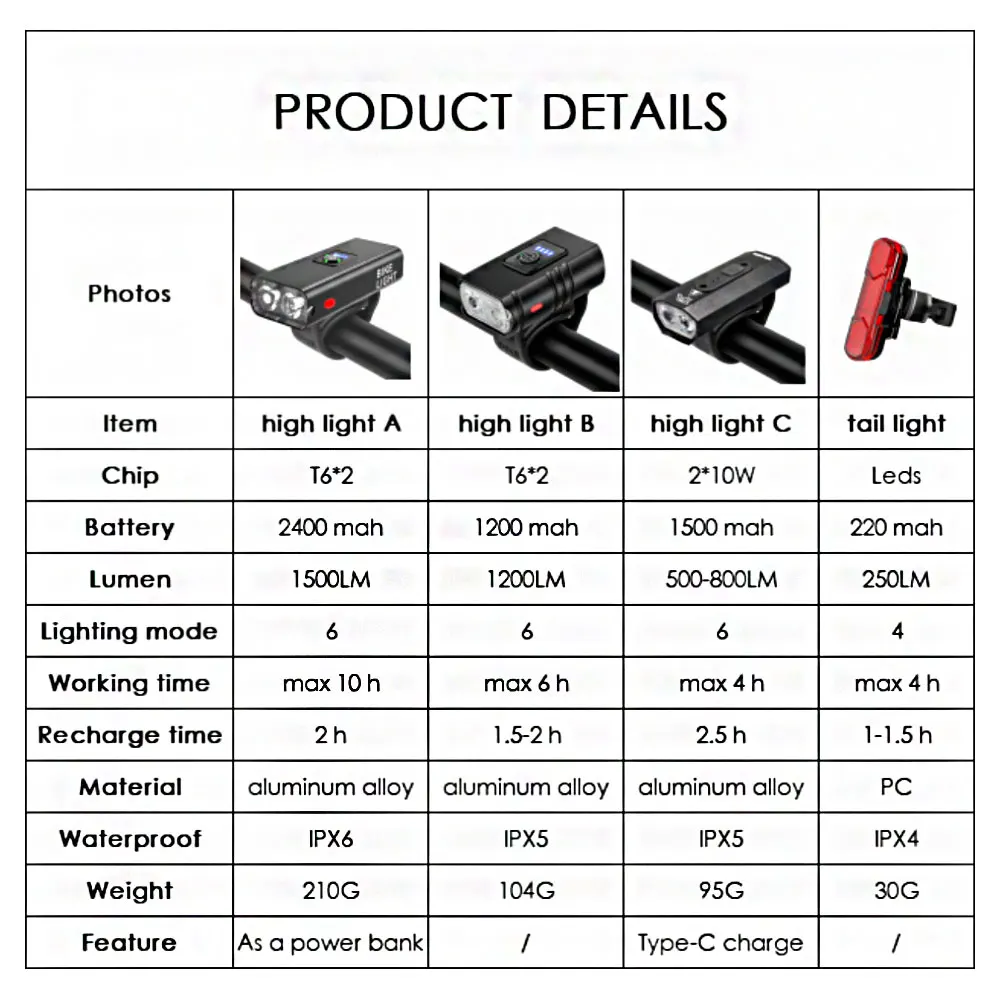 Фсветильник велосипедный, 2400 мА ч, 6 режимов, USB, IPX6, 1500LM