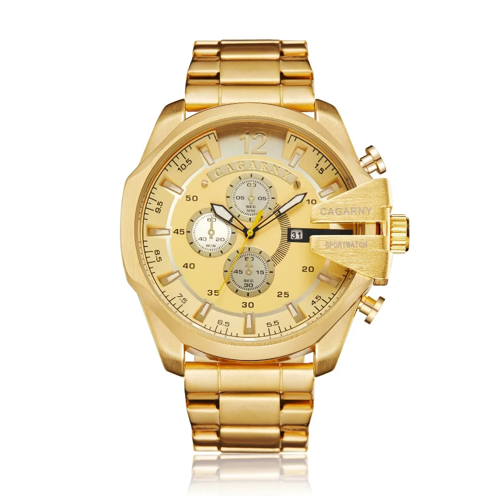 Мужские часы Cagarny, золотые, черные, из нержавеющей стали, мужски...