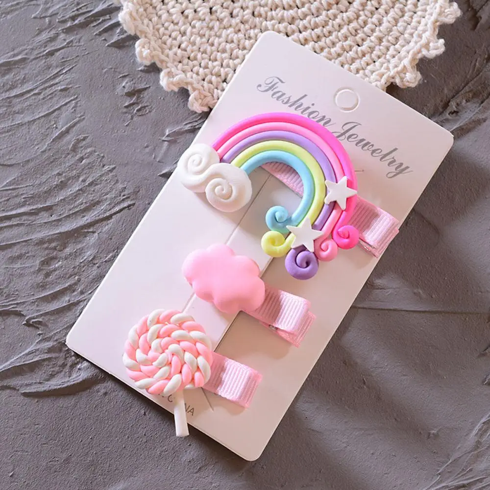 Новые милые радужные заколки для волос для девочек Красочные заколки для волос в форме леденцов Мультяшные облака заколки набор заколок для волос Детские аксессуары для волос