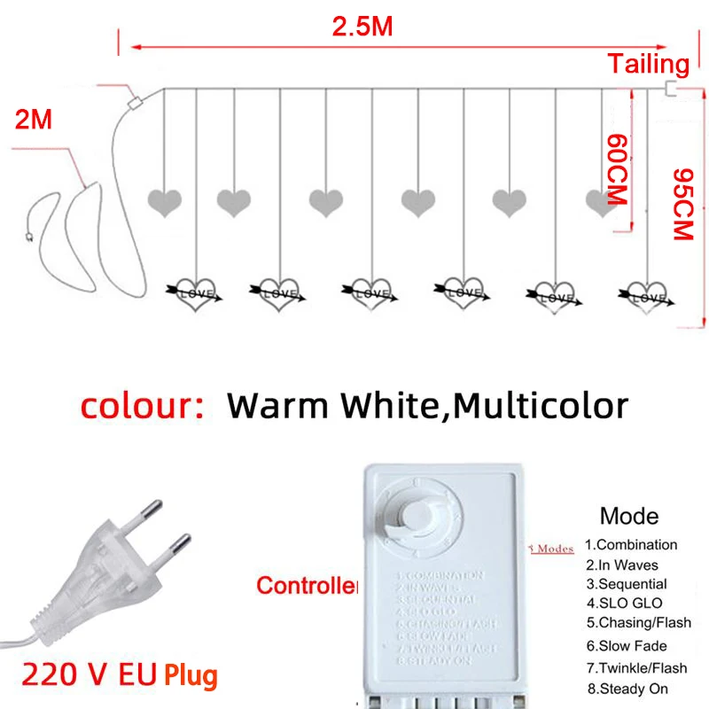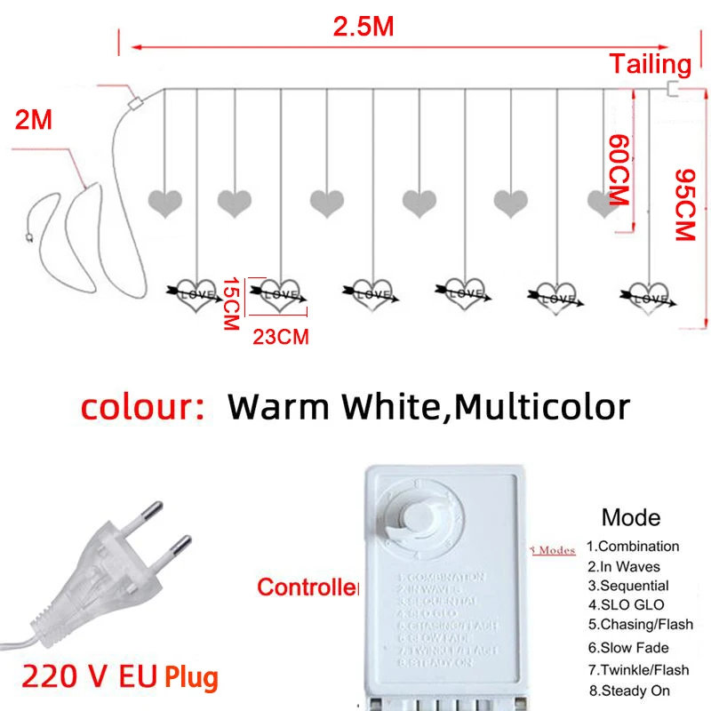 2,5 м 138LED Европейский заглушка в форме сердца занавес светильник...