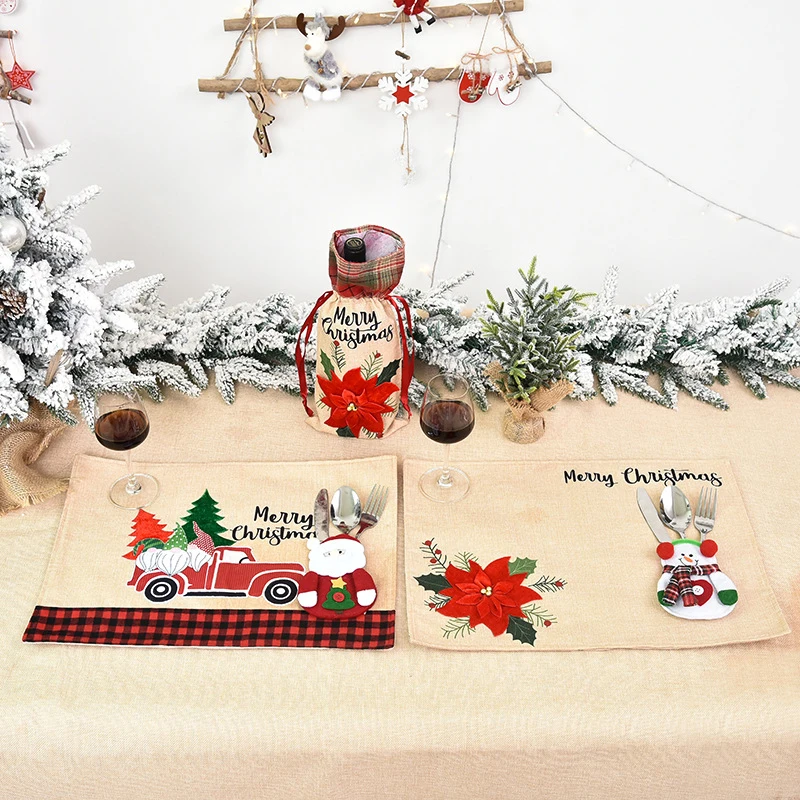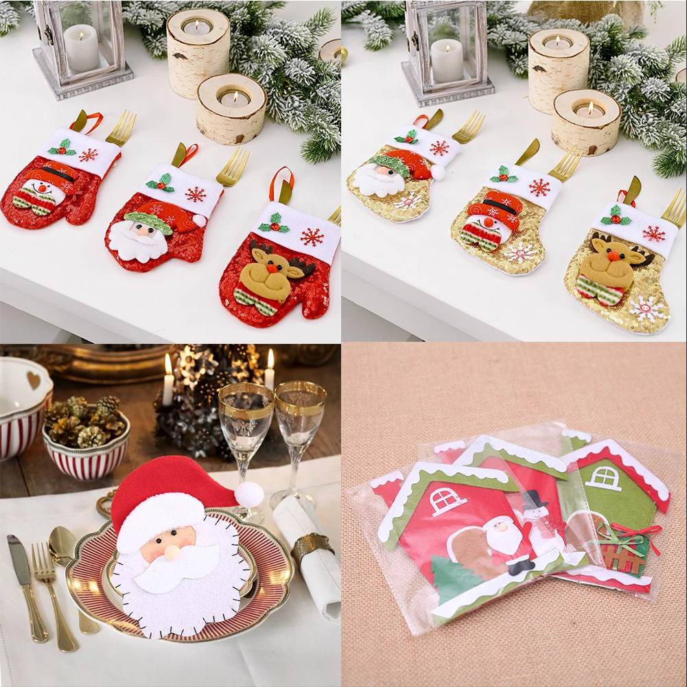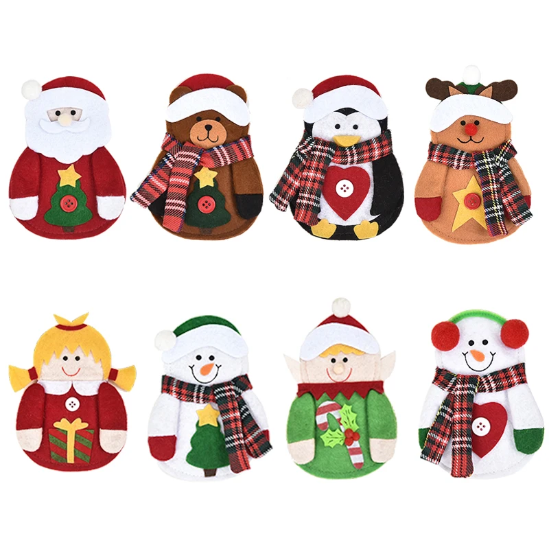 2022 тканевый Набор ножей и вилокукрашение для рождественского обеденного столаРождественский набор ножей и вилок со снеговиком и лосем для кукол