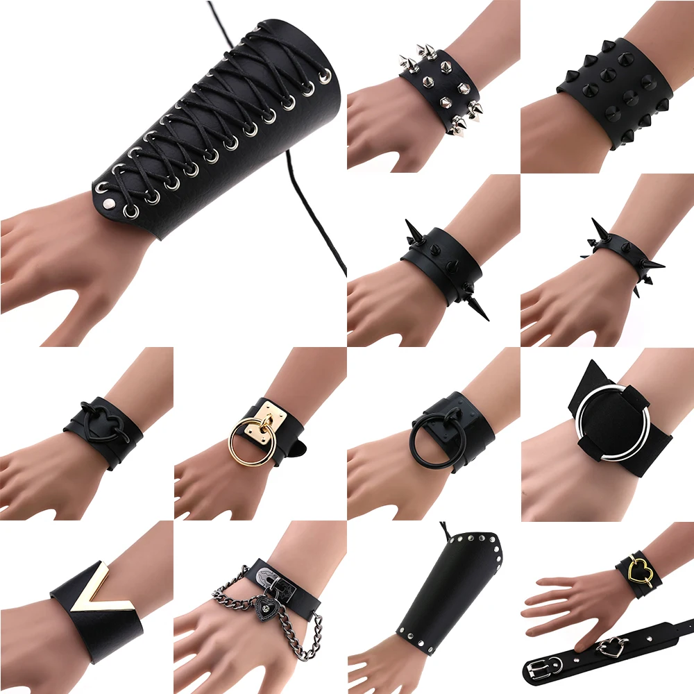 QIAMNI ручной работы Harajuku панк готический сексуальный браслет из искусственной кожи на запястье Браслет-манжета унисекс для пары клуба вечеринки подарочные браслеты