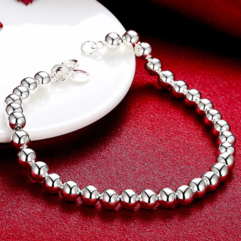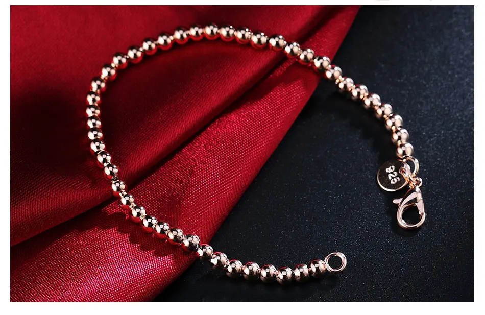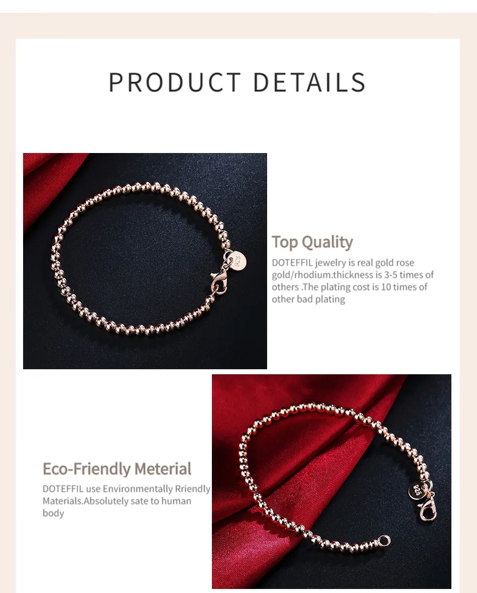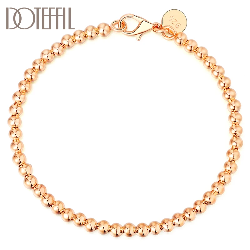 Женский браслет-цепочка DOTEFFIL, из стерлингового серебра 925 пробы, розовое золото, 4 мм, с гладкими бусинами, Свадебные вечерние ювелирные изделия