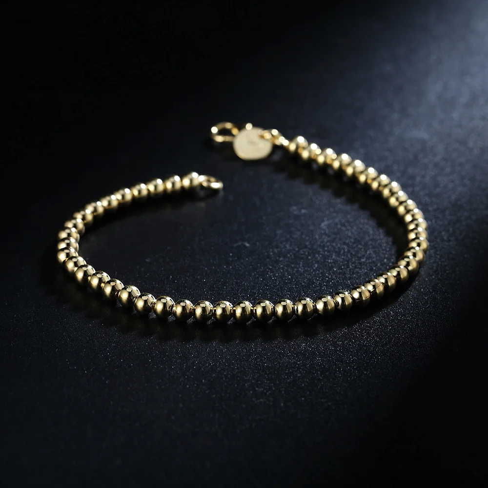 Браслет из серебра 925 пробы, с бусинами 4 мм, 18 К14 к, под золото