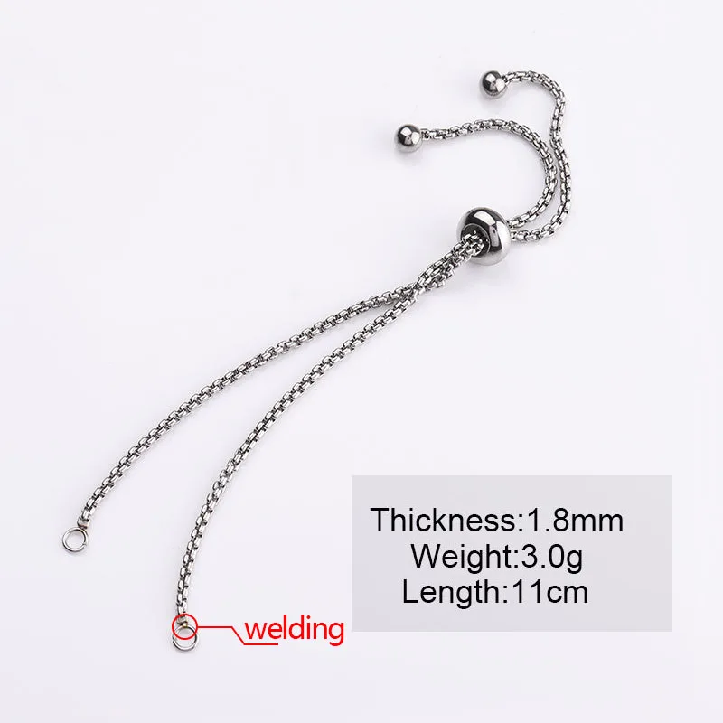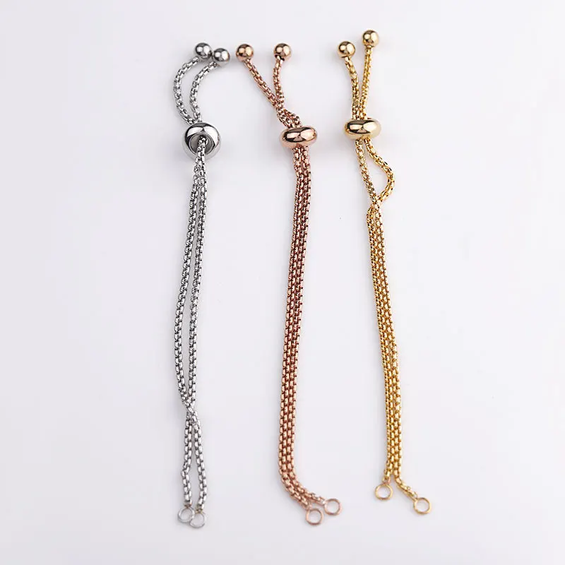 Fnixtar, 20 шт.лот, регулируемая цепочка из нержавеющей стали, слайдер, расширитель цепи, ювелирные изделия, фурнитура для DIY ювелирных изделий, браслеты