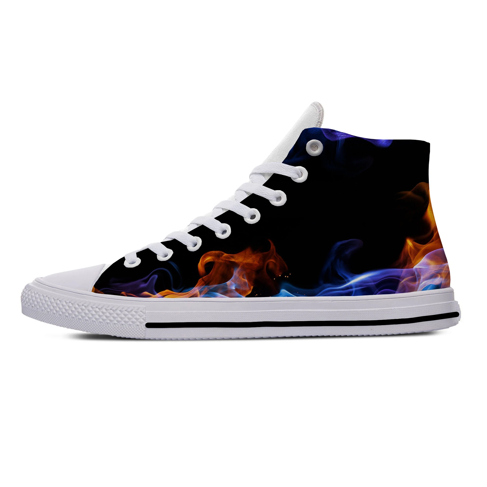 Аниме мультфильм пламя модные смешные повседневные тканевые туфли высокие легкие дышащие 3D печати мужские женские кроссовки