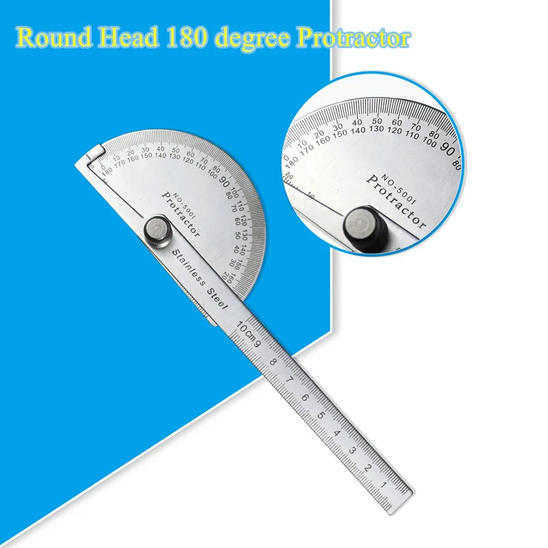 1 шт. круглая головка из нержавеющей стали 180 градусов транспортир Угол Finder роторный измерительный машинист, Инструмент Линейка 10 см