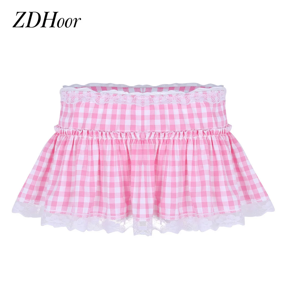 Юбка-трапеция с кружевным подолом для мужчин и женщин, пикантная плиссированная мини-юбка, школьная нижнее белье Sissy, Повседневная Юбки Gingham