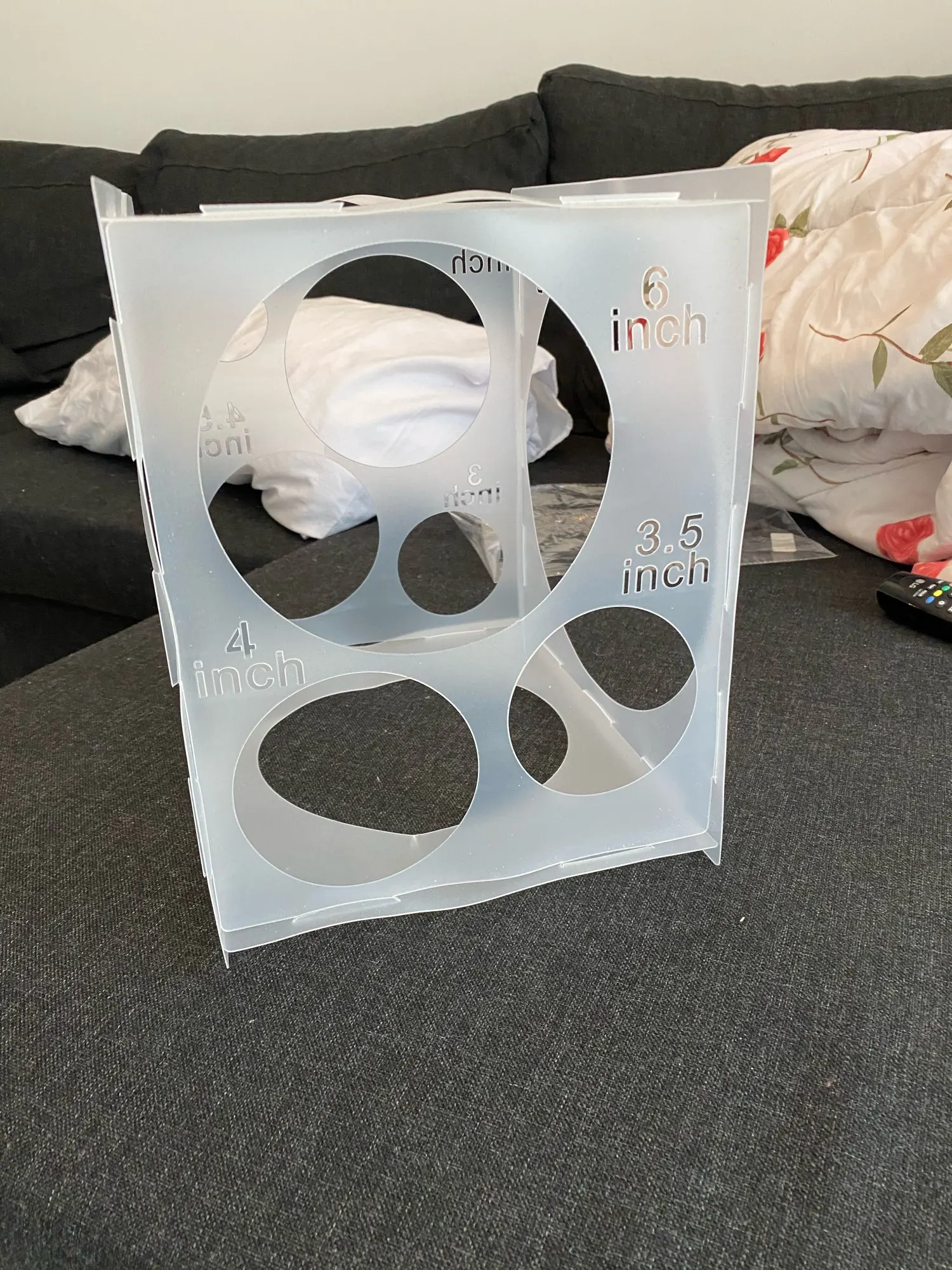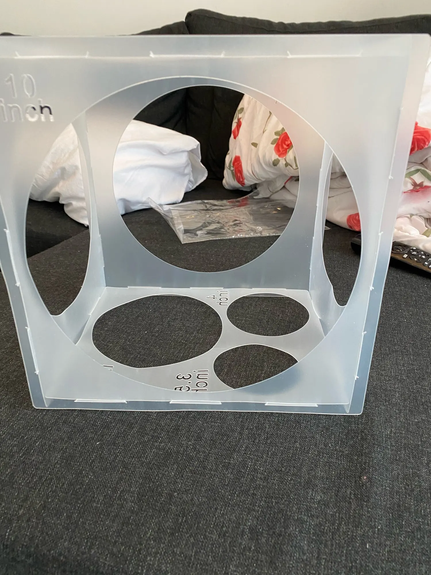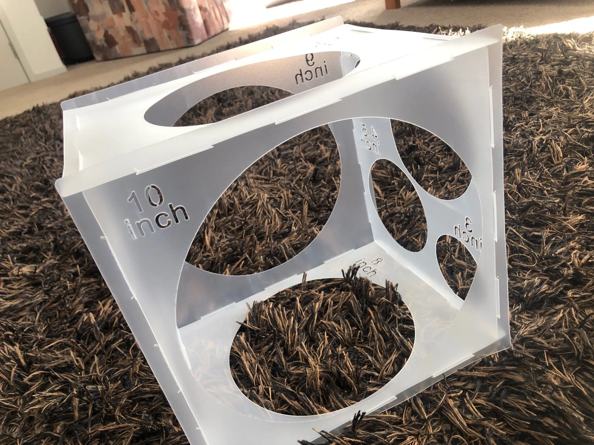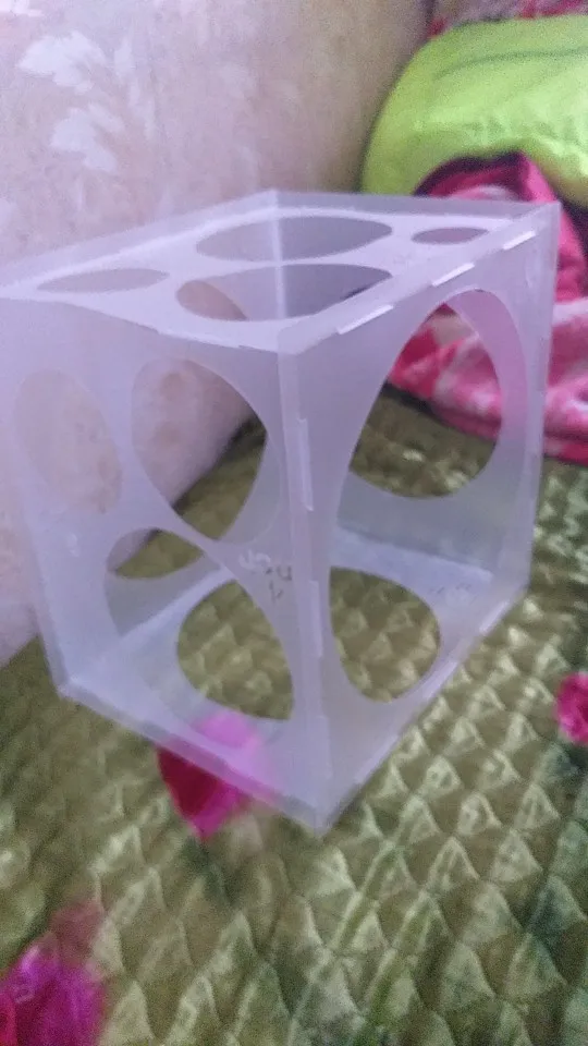Товар не очень хорошо упакован, пришёл весь помятый, поэто 4 звезды. Продавцу лучше его сворачивать в рулон. Проблему решили, разгладив формы утюгом через ткань. Само изделие нормальное. Пластик очень тонкий и гибкий, но в собранном виде куб достаточно жёсткий.
