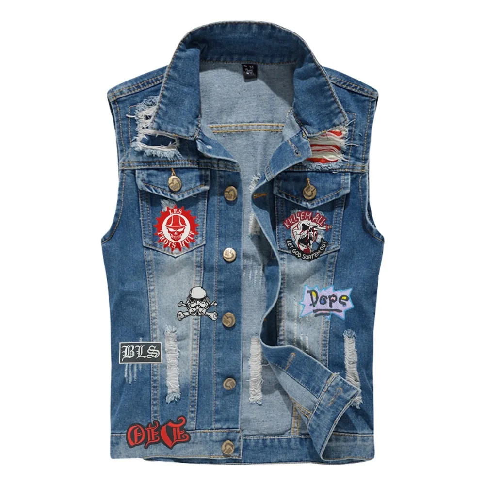 Ручной работы с пистолет жилет с черепами в байкерском стиле вышито...