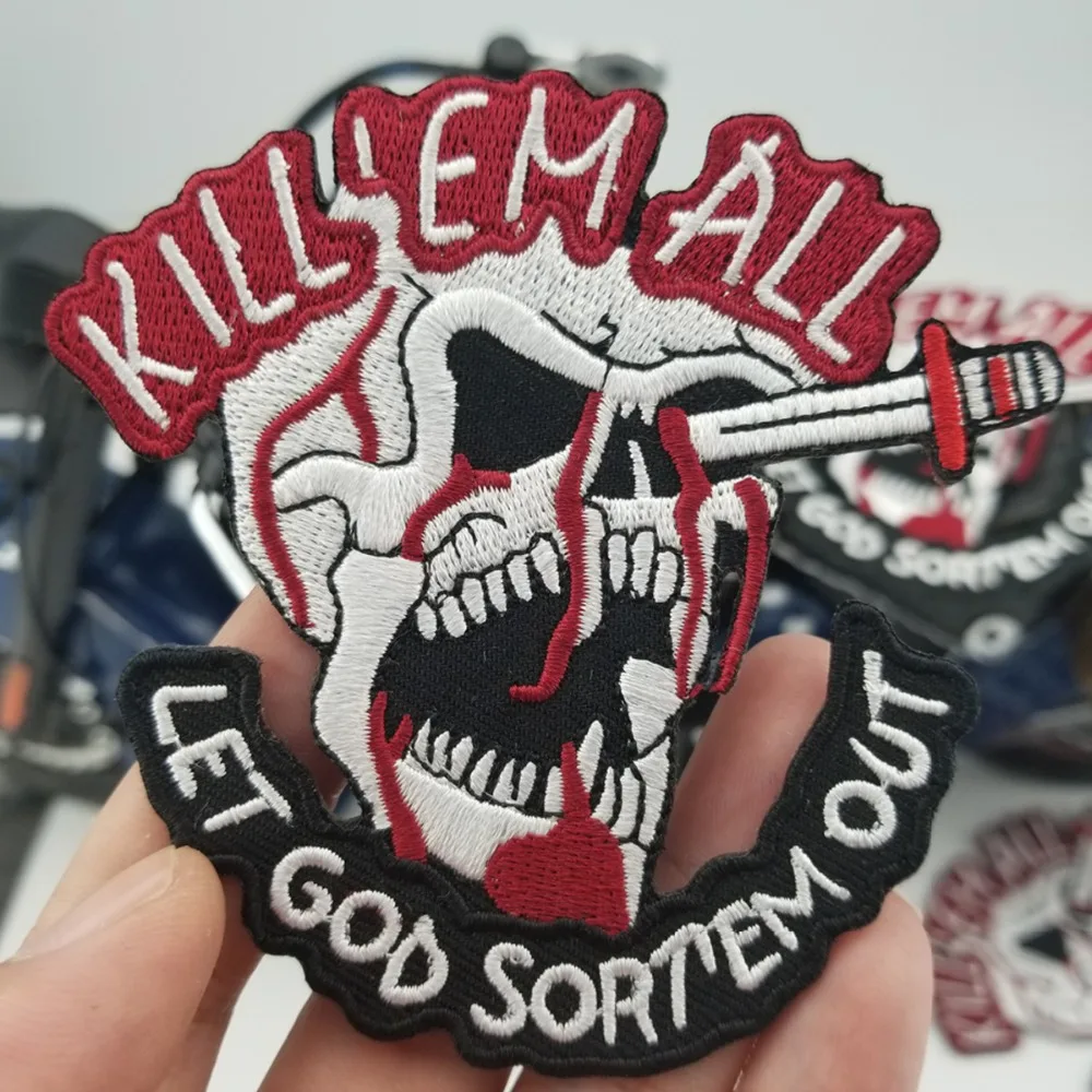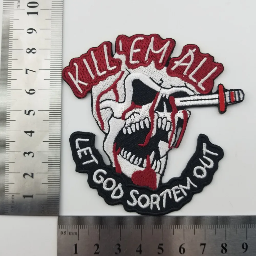 Кровь череп Let God Sortem Out вышивка патч мотоциклетная куртка значки для Одежды Утюг на шитье крутой модный дизайн DIY