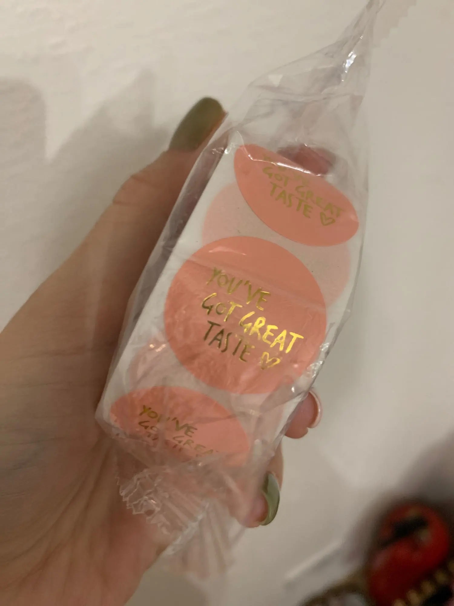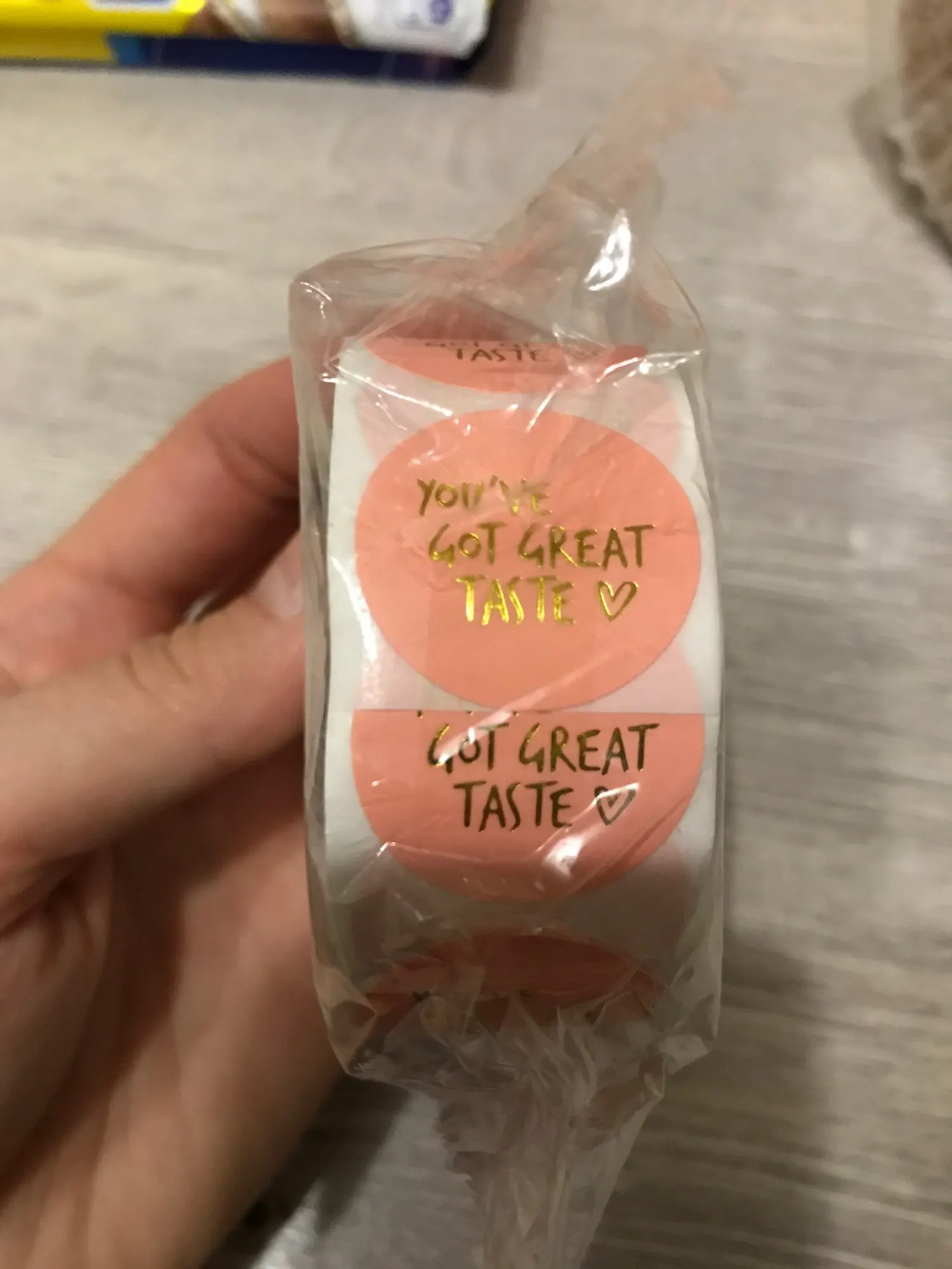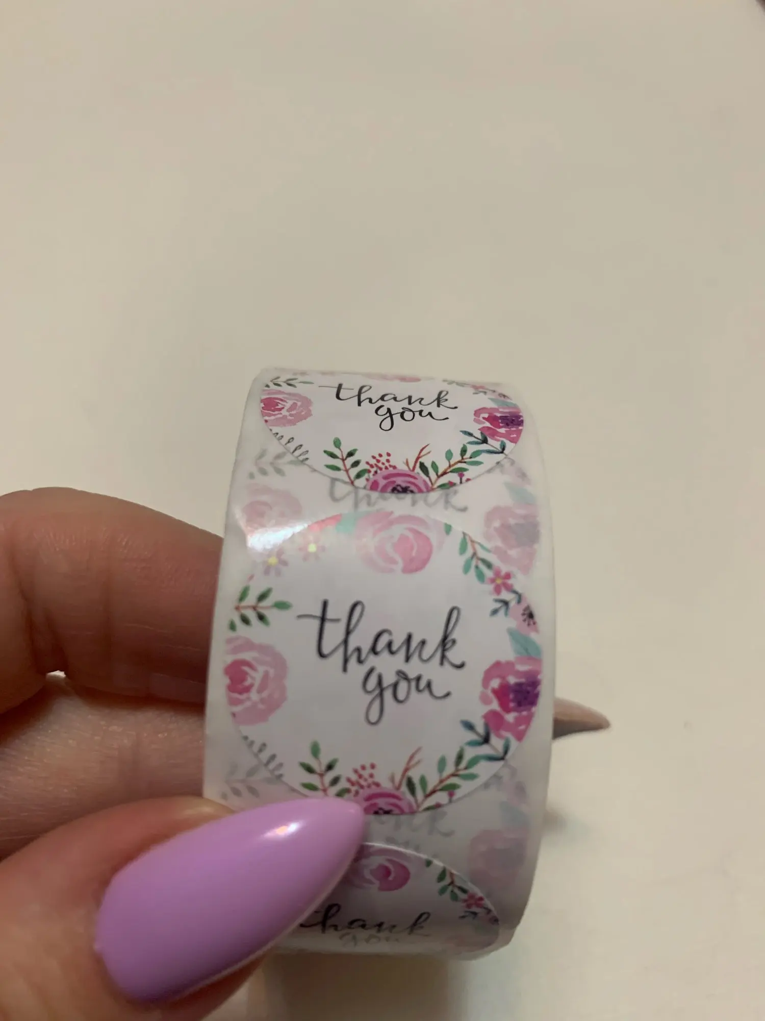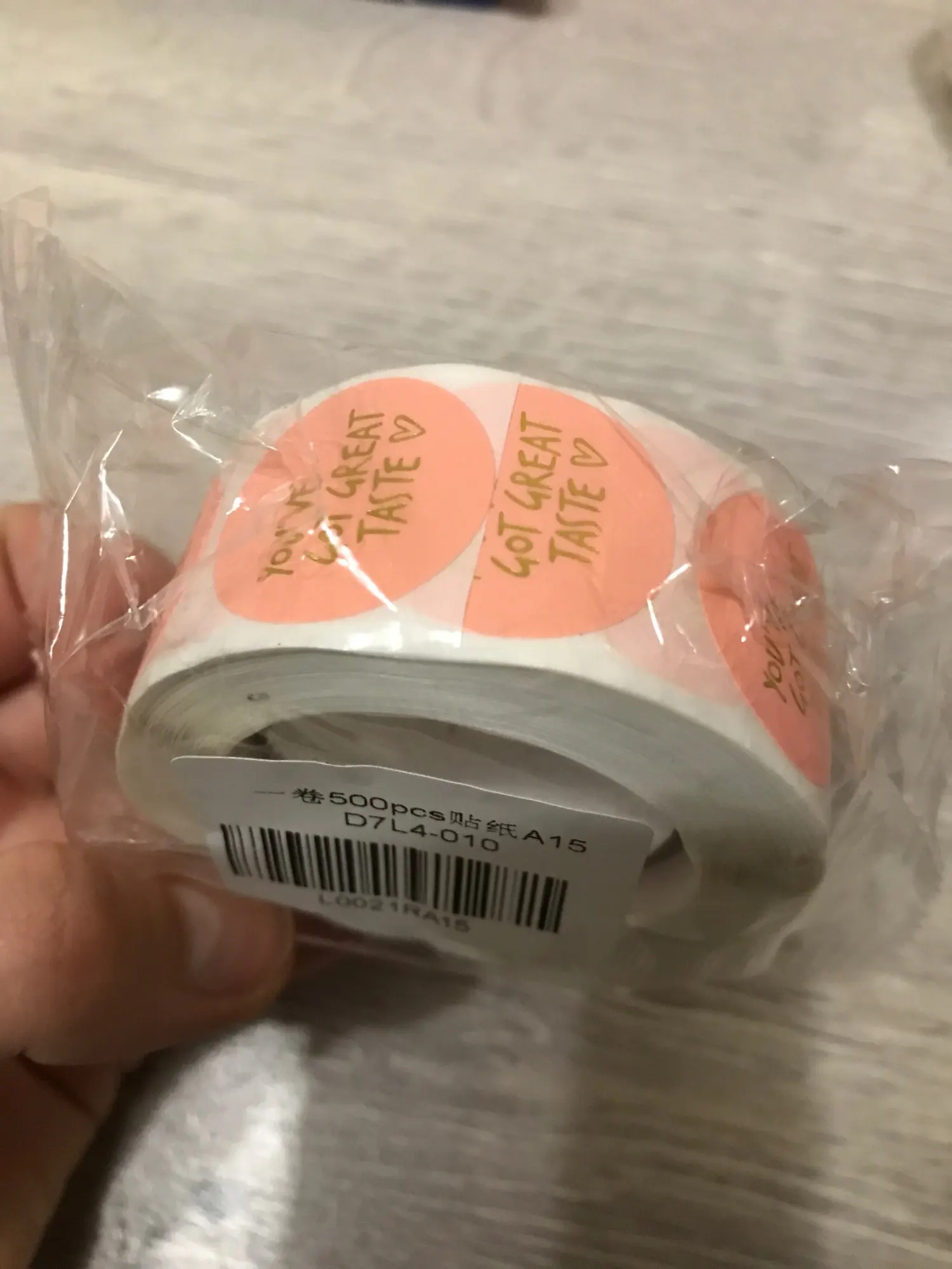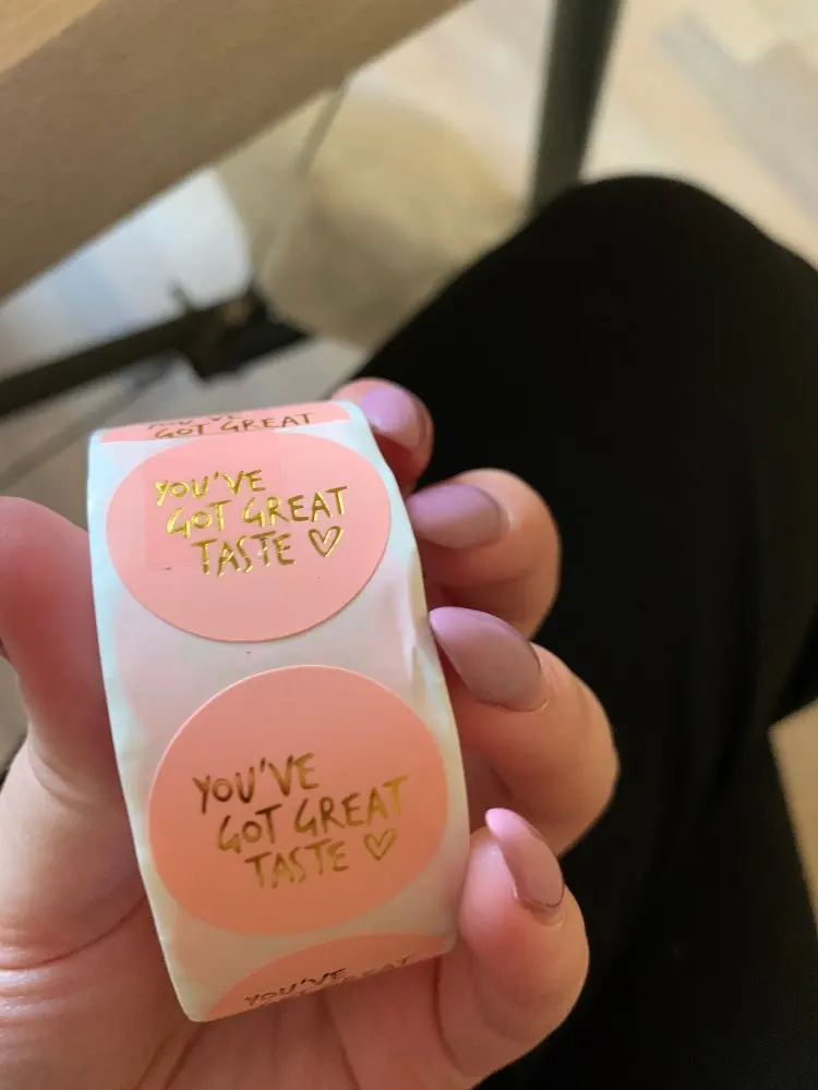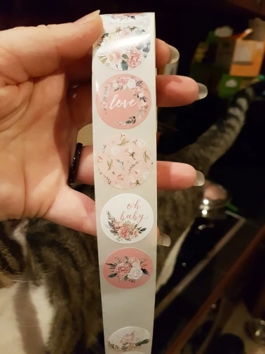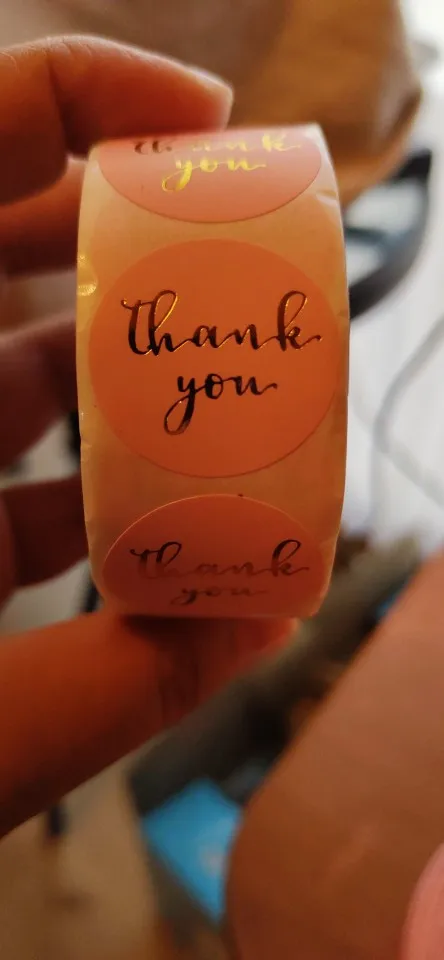 Красивые наклейки, без брака на золотой печати. Колличество не считала, по виду вроде 500шт получается. Доставка около двух недель, упаковано в герметичный пакет, потому все целое и невредимое. Цвет совпадает с картинкой, размер 2.5 см, к продавцу претензий нет, справился на отлично)