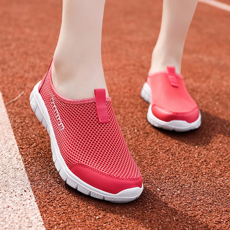 Унисекс летние дышащие беговые кроссовки без шнуровки женские уличн...
