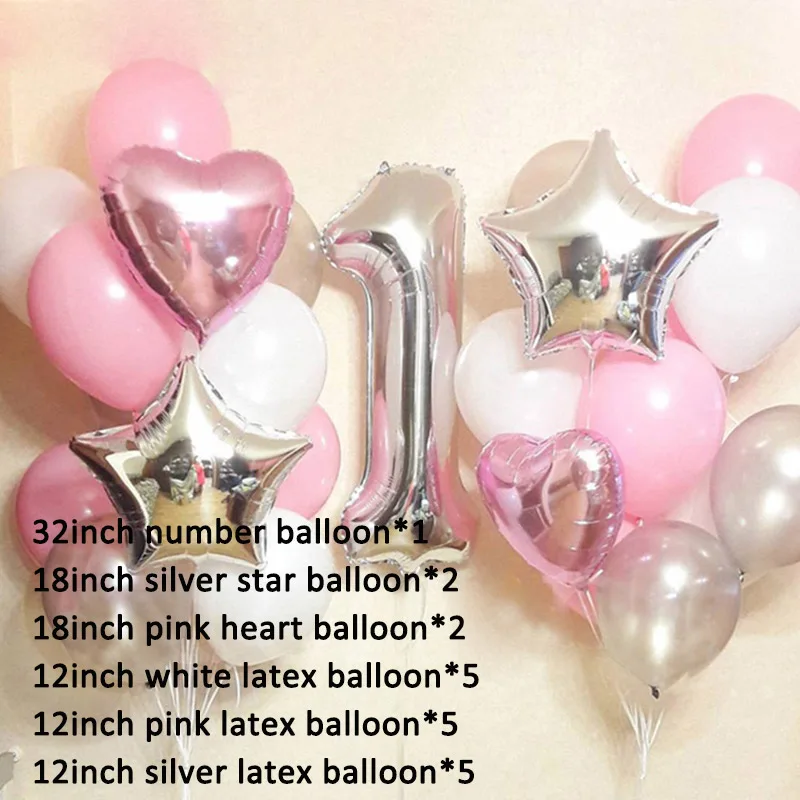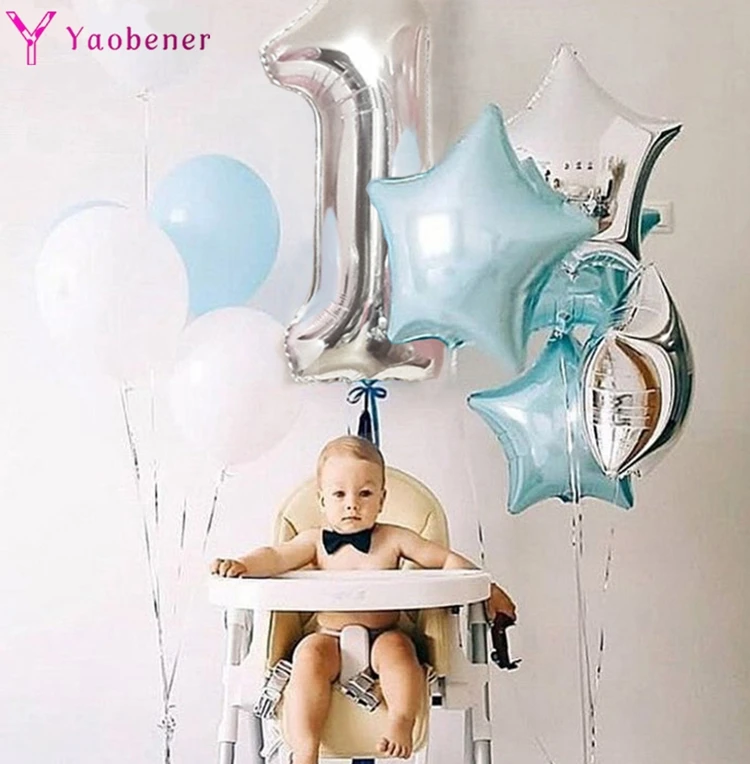 Надувные шары для первого дня рождения, серебристо-голубые, воздушные шары из фольги в виде цифр