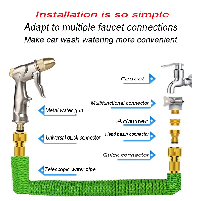 Расширяемый садовый шланг с водяным пистолетом, регулируемая насадка, гибкая труба, пена с распылителем высокого давления для автомойки, 25-150 футов