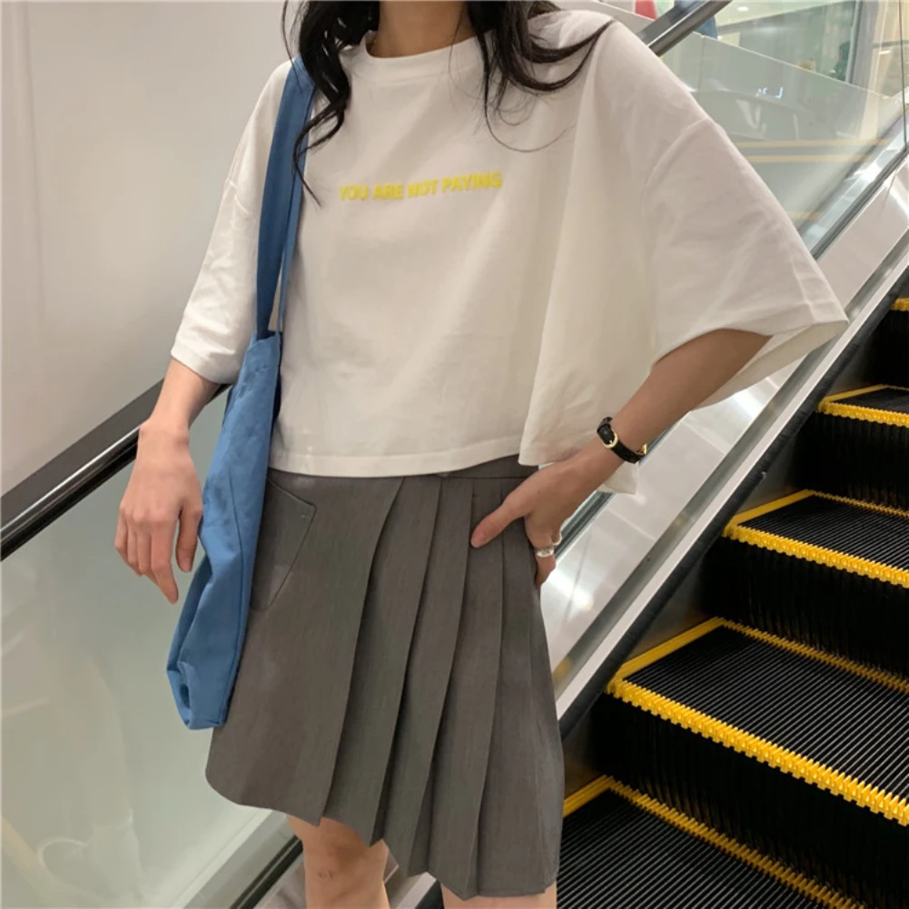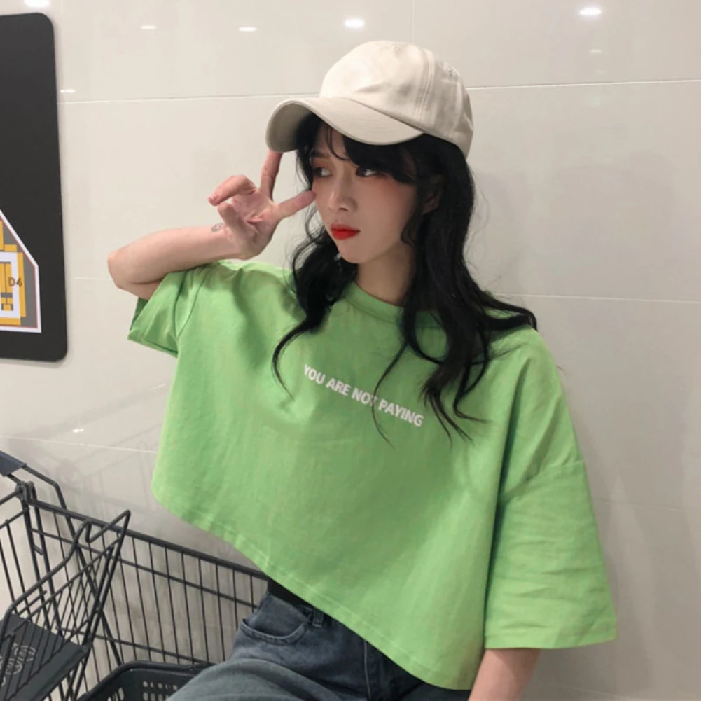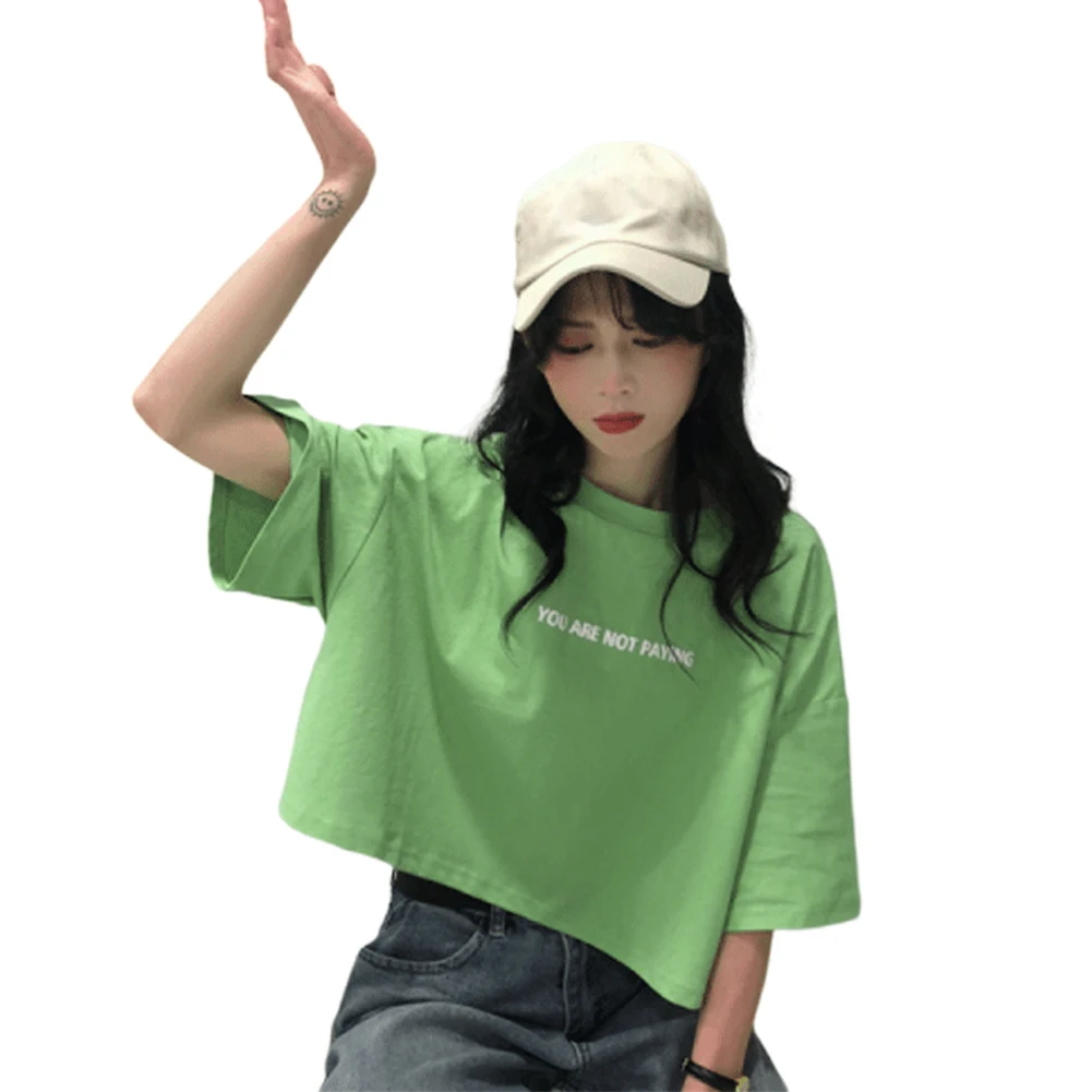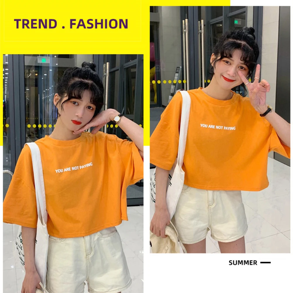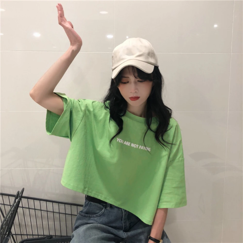 Корейская стильная футболка с круглым вырезом и рукавом до локтя, Женская Повседневная Свободная летняя футболка, топ для девушек