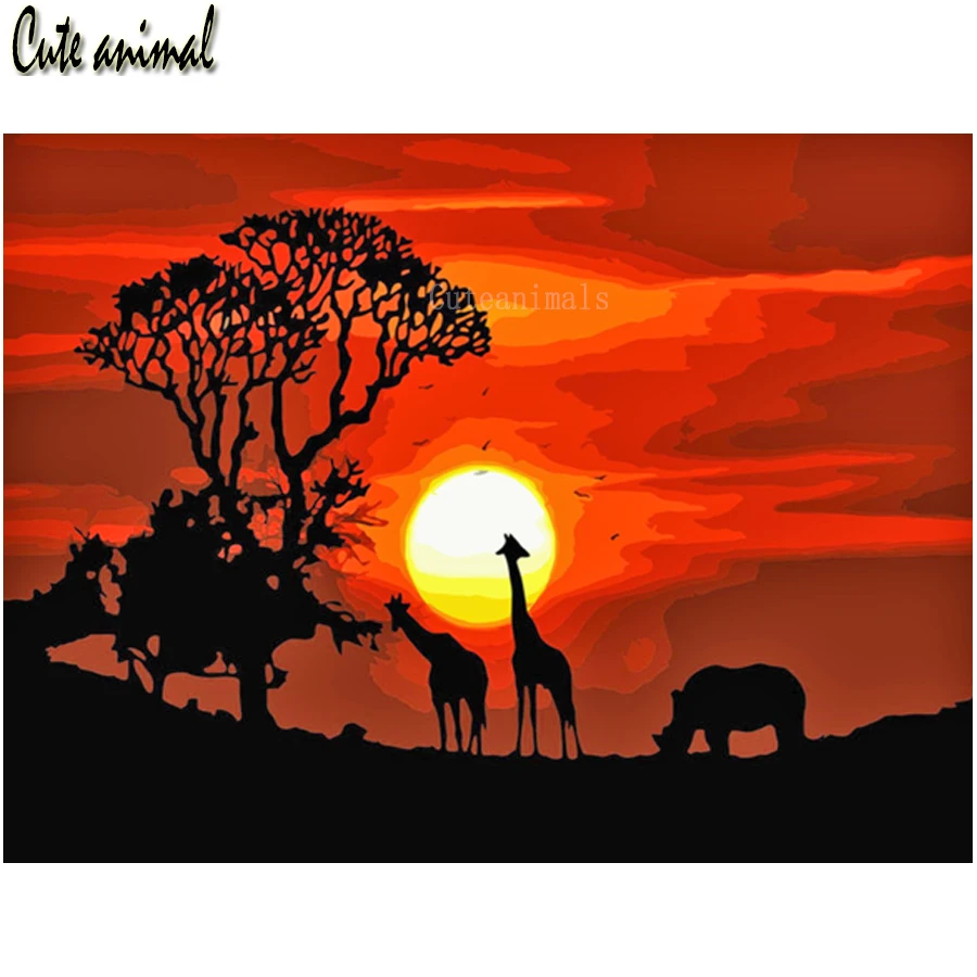 Жираф закат пейзажи Африки 5d алмазная картина полная дрель круглый квадратный украшение дома diy Алмазная вышивка Мозаика Декор