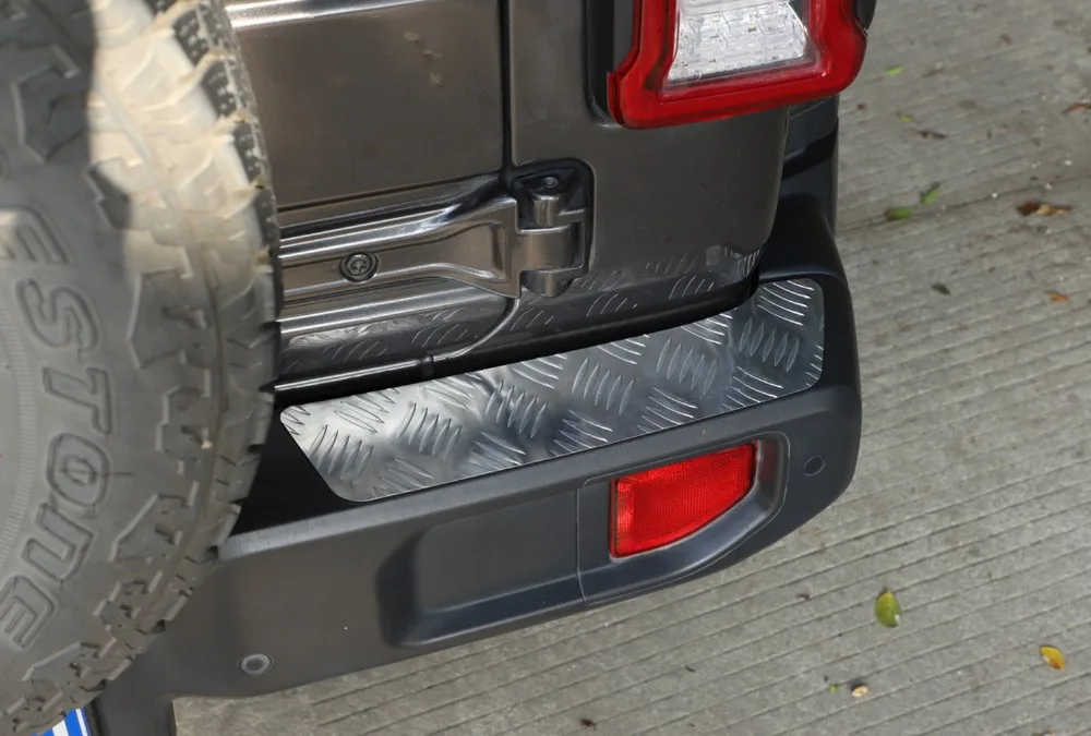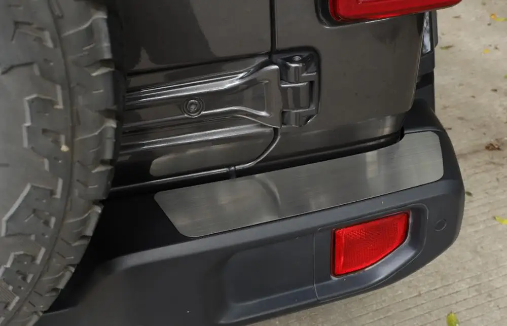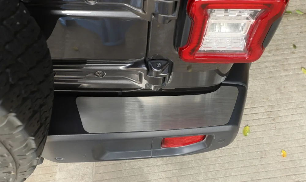 Спортивный резиновый задний бампер для Jeep Wrangler JL JLU 2018 2019, декоративная крышка, наклейка для отделки автомобиля, внешние аксессуары, алюминий