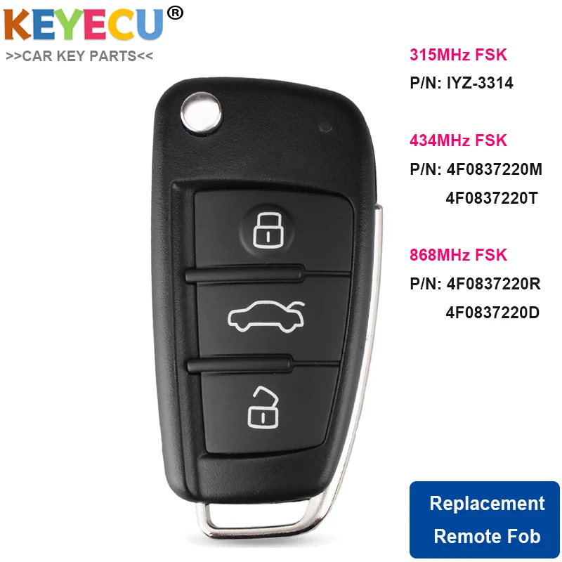 Пульт дистанционного управления KEYECU для автомобилей Audi A6 S6 Q7 2004-2015, 3-кнопочный, чип 8E, IYZ 3314 4F0837220R 4F0837220M 4F0837220T