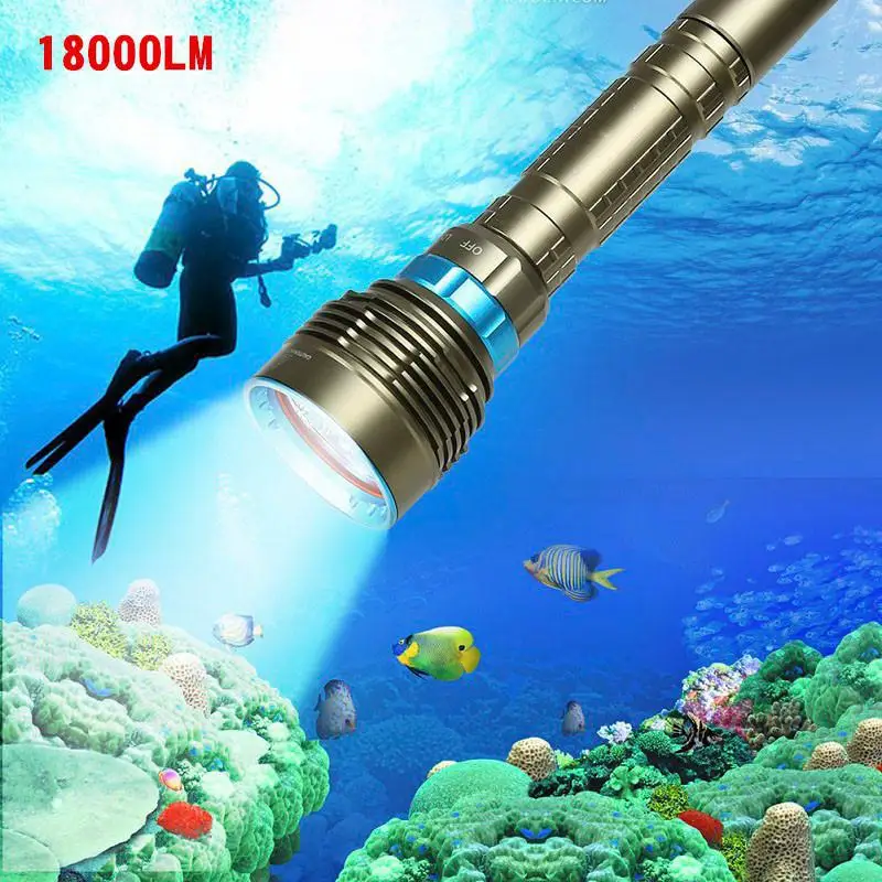 Светодиодный фонарь XML-T6 для дайвинга, профессиональный водонепроницаемый фонарь для подводного плавания, тактический фонарь, 18000 люмен