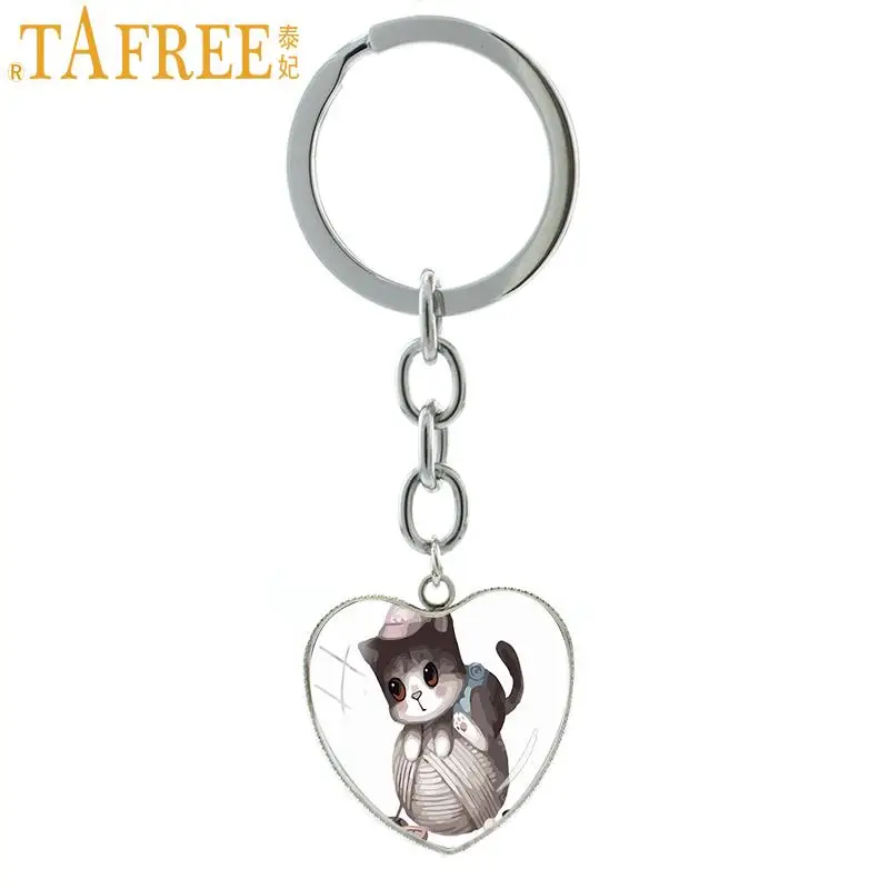 TAFREE активное домашнее животное, брелок для кошек, цепочка для ключей в виде котов, стеклянный карбошон, брелок для подарка друга, ювелирное изделие TB43