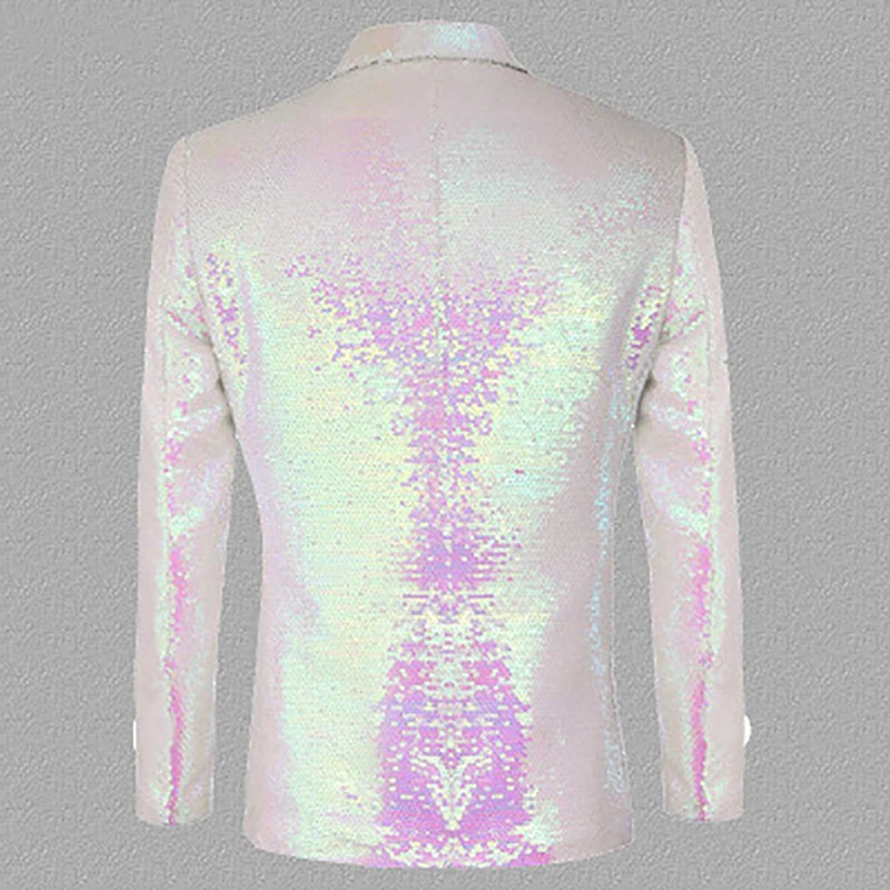 Бело-розовые двухцветные блестящие мужские блейзеры, приталенные костюмы для сцены, певицы, барабанщика, хозяйки, жениха, вечеринки, выпускного вечера