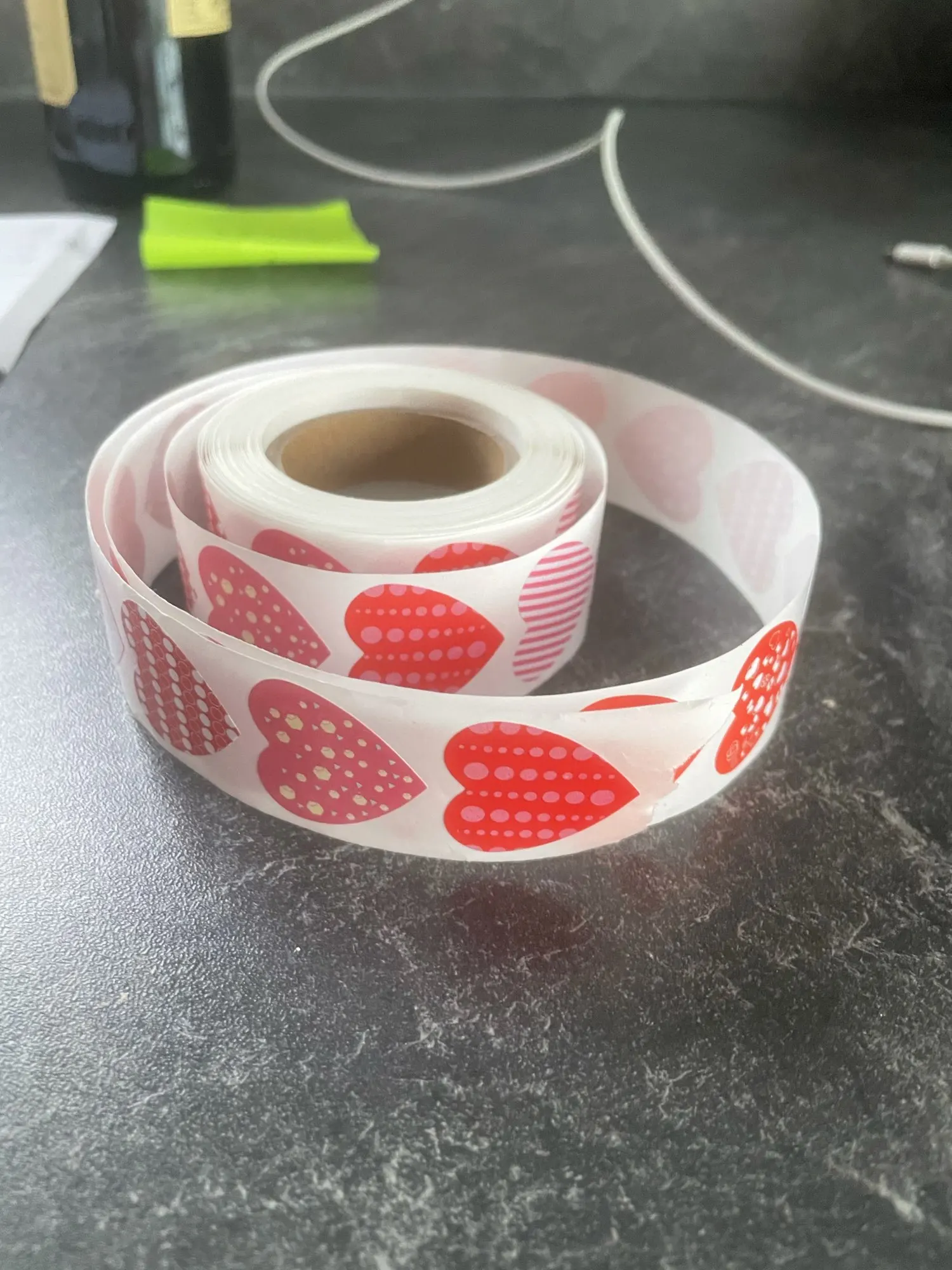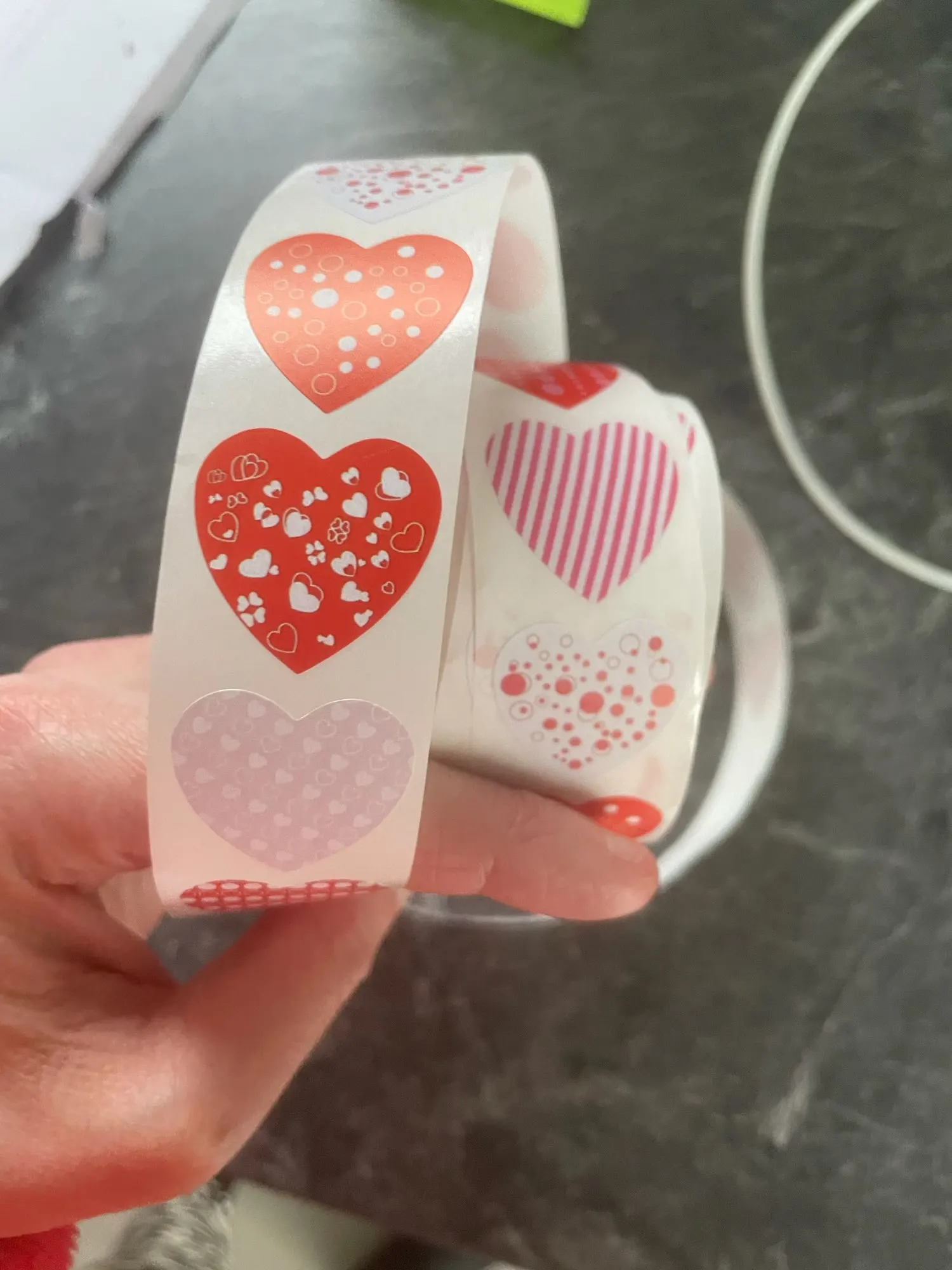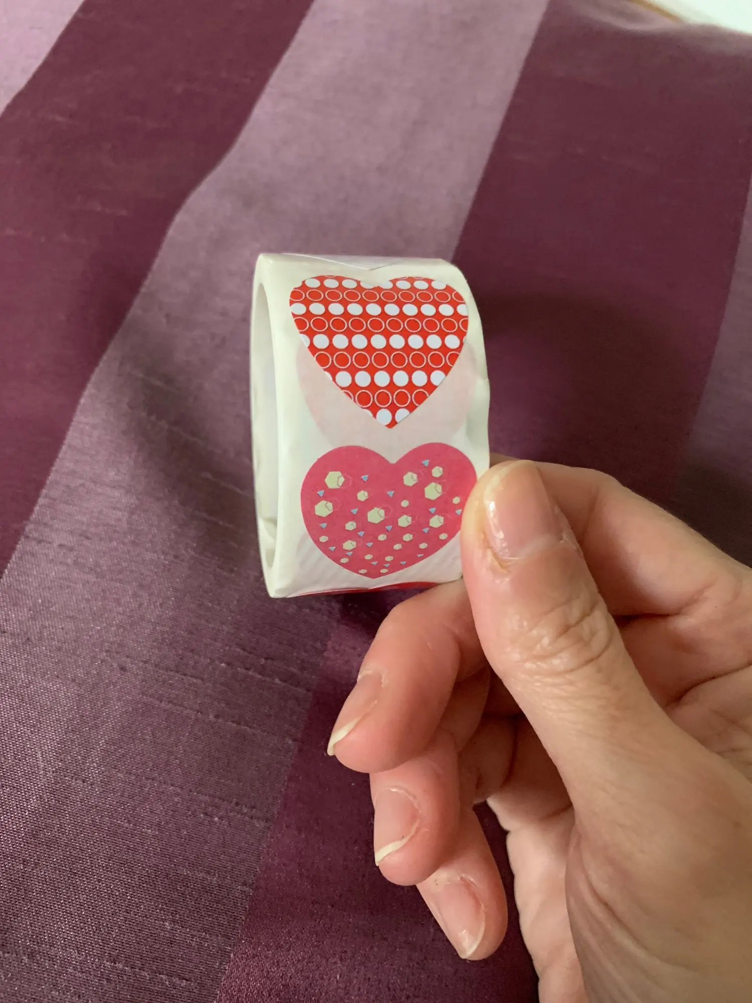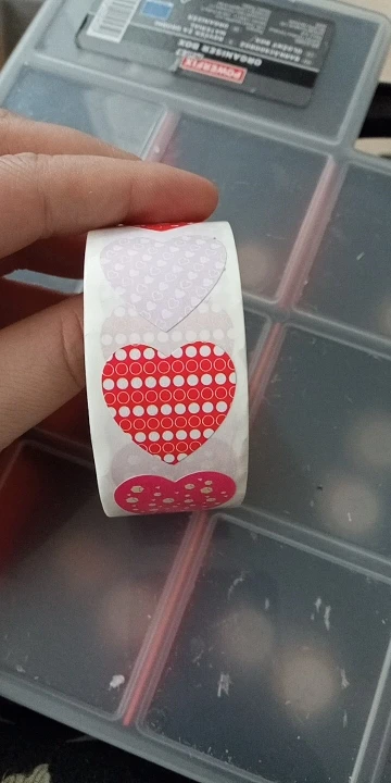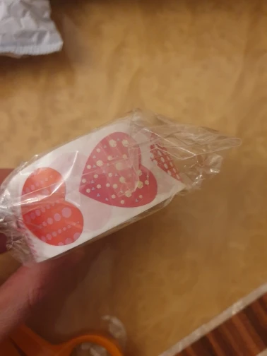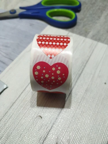 Рулон сердечных наклеек. Они меньше, чем то, что визуально «Видно» на фотографиях, но очень хорошего размера. Они хорошо держатся и ассортимент разнообразен и красив.