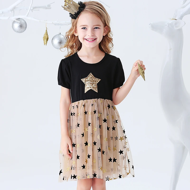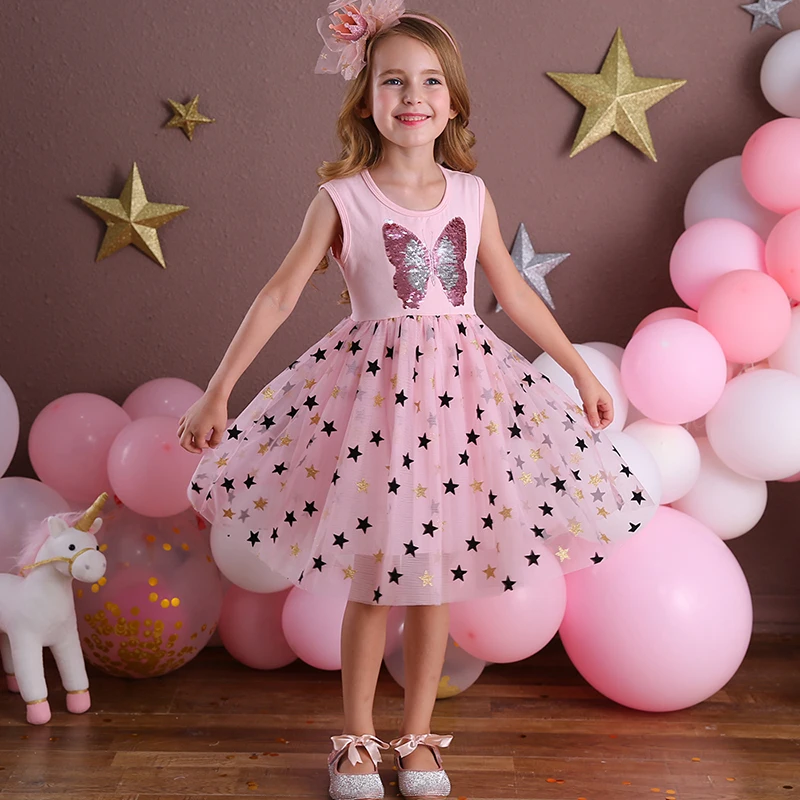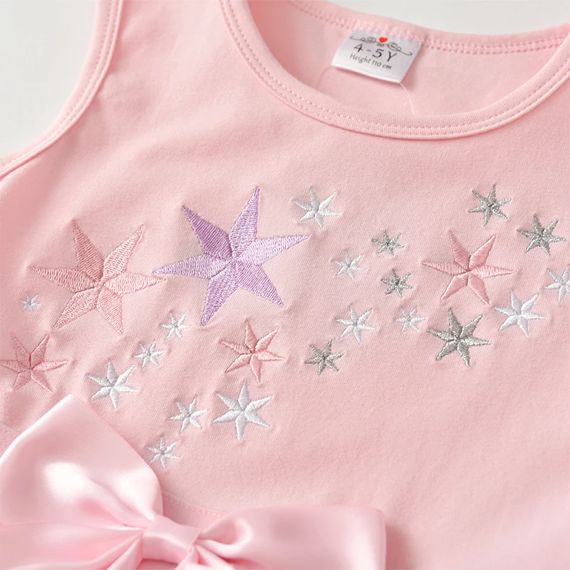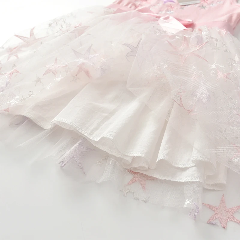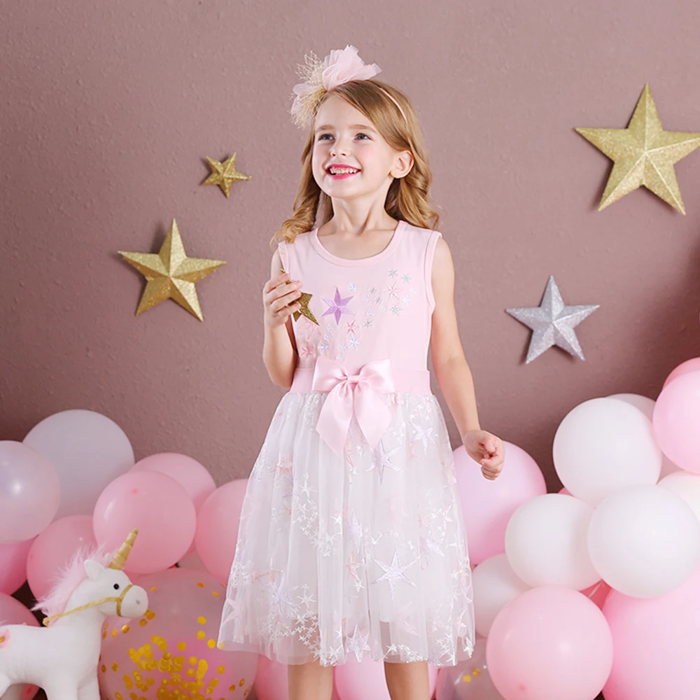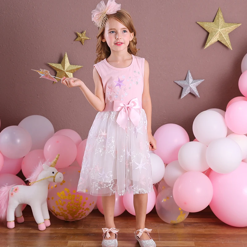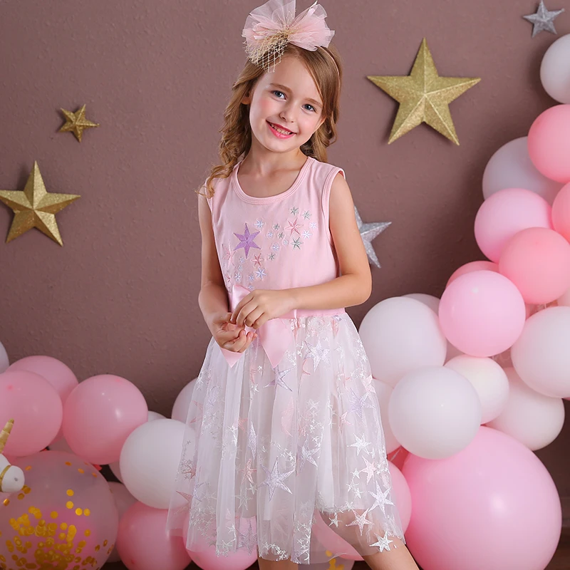 Платье с вышивкой для девочек, детское кружевное платье-пачка без рукавов с принтом звезды для дня рождения, детская повседневная одежда