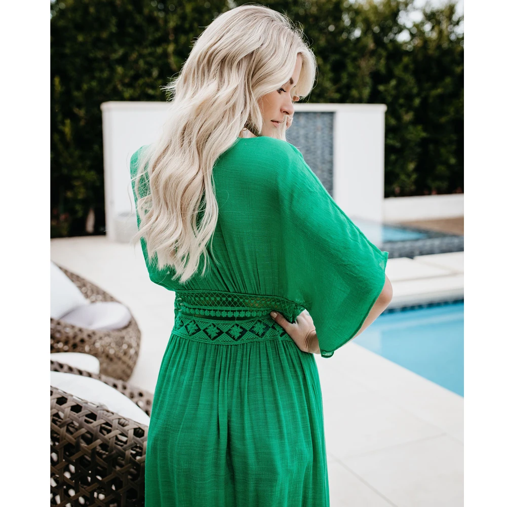 Сексуальная женская летняя накидка на бикини, длинные однотонные платья, шифоновая кружевная женская прозрачная одежда, женское пляжное платье с глубоким V-образным вырезом, одежда