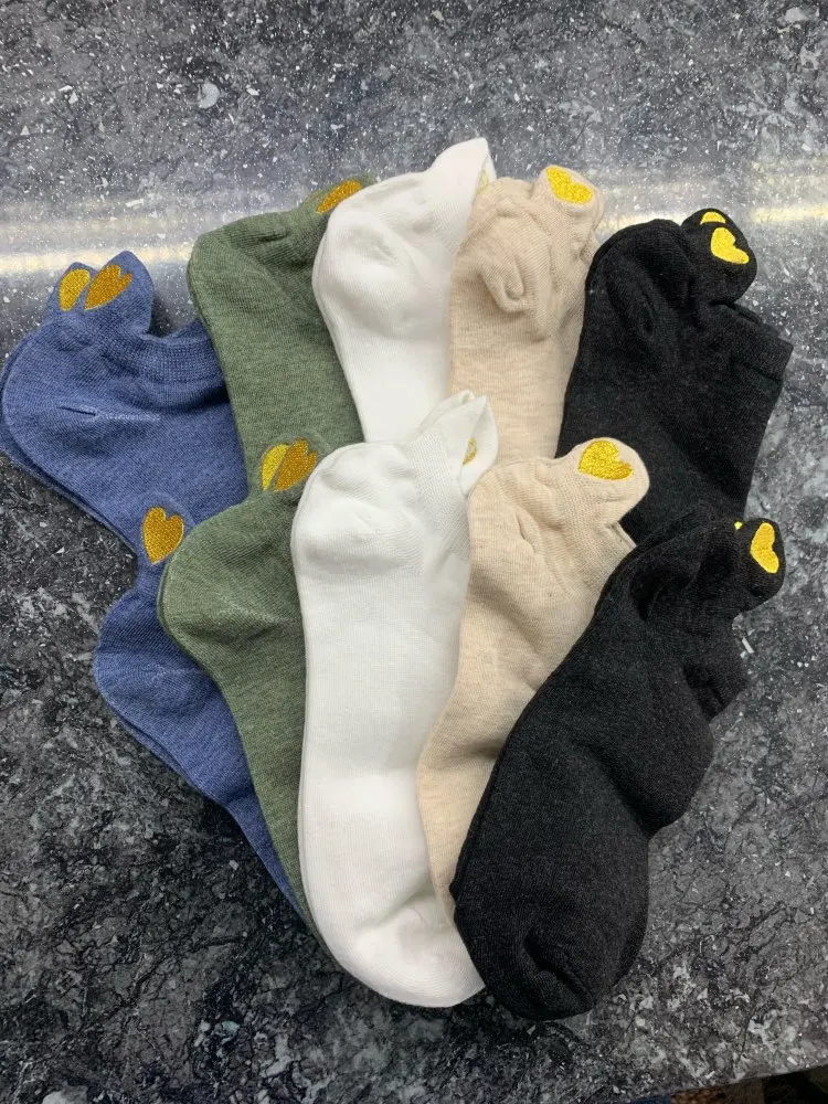 Распродажа! Носки женские хлопковые короткие, с сердечками, 5 пар, новинка носки с принтом в форме сердца