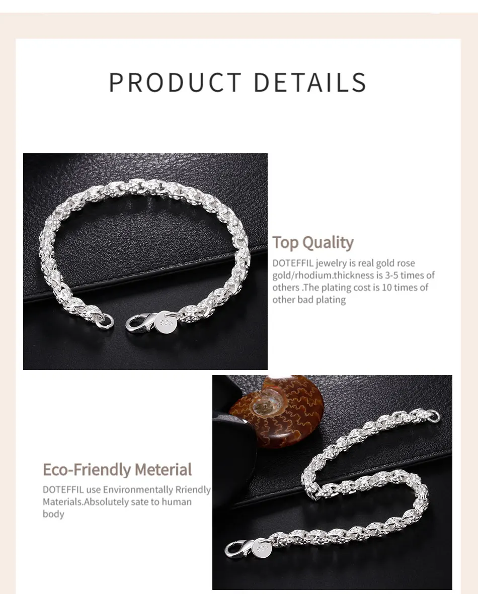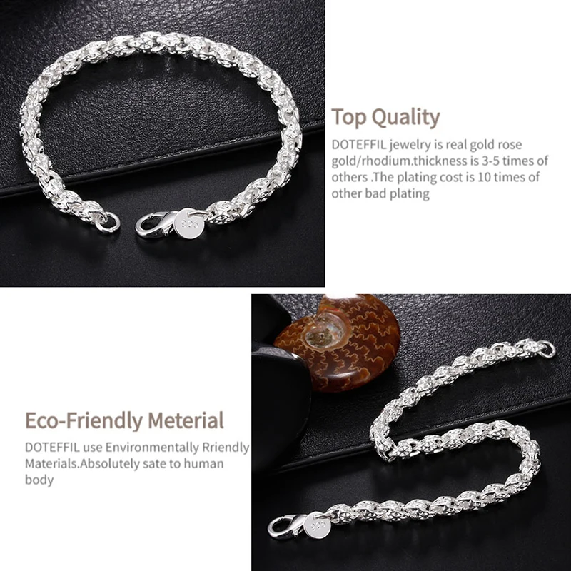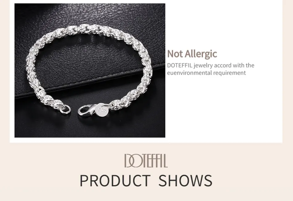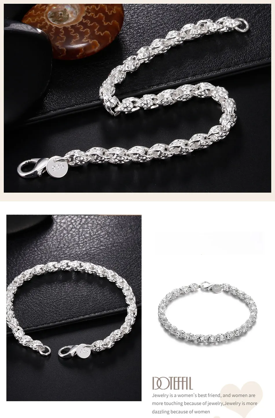 Браслет-цепочка DOTEFFIL из стерлингового серебра 925 пробы для женщин и мужчин, ювелирные украшения для свадьбы, помолвки и вечеринки