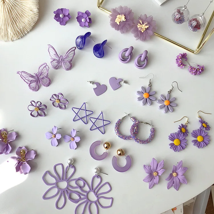 2020 Новое поступление корейские модные популярные фиолетовые сережки с цветами креативный праздничный подарок Эффектные серьги для женщин